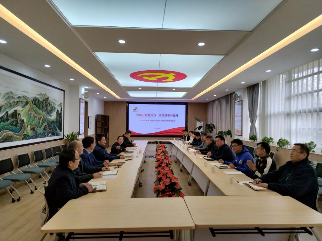 与体育学院在学院二楼党建活动室开展党建工作经验交流会,体育学院党委书记马明、党委副书记马志洋,动画疯
