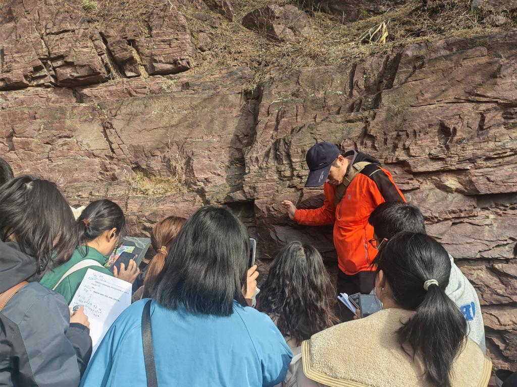 本次实践教育依托云台山文化旅游学院实践教育基地,选择基地具有代表性的红石峡、小寨沟、泉瀑峡、茱萸峰、叠彩洞等地点开展地质地貌及地质构造认识学习,掌握峡谷地貌形成的原因及特点,探寻其中的演化规律,结合专业开展土壤植被生态研究。“对话”距今25亿年、14亿年、5亿年的岩石,让全体人员深切感受到了大自然的神奇力量,开启了一场穿越时空的地质探索之旅。发现规律,遵循规律,尊重自然,敬畏自然,通过实践活动,深刻领会了习近平总书记关于把握新发展阶段、贯彻新发展理念、构建新发展格局的要求。