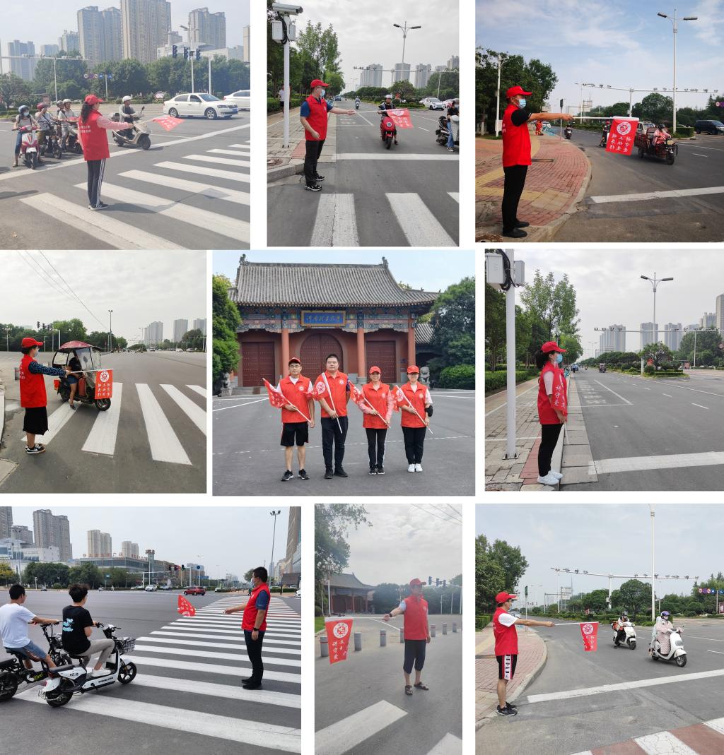 教工党员志愿服务队在市迎宾路与韩愈路交岔路口开展了“文明交通”志愿服务活动。