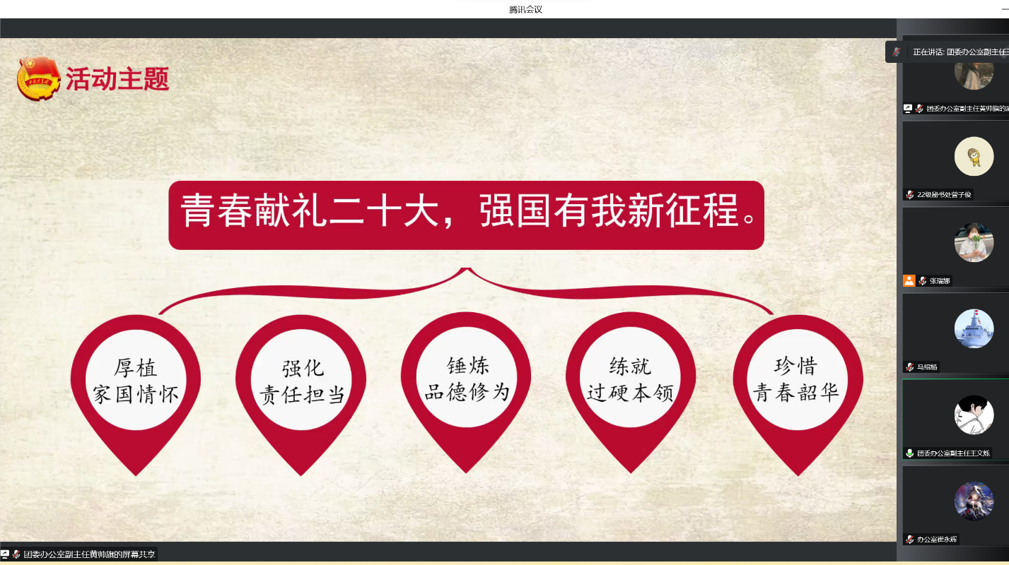 团委在线上召开第十四届任责杯团日活动宣介会,本次会议由张瑞娜主持,21、22级各班团支书、班长以及动画疯