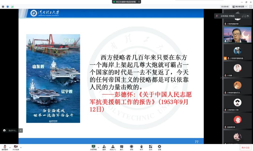 申海涛老师以“自信自强 守正创新——深入学习贯彻党的二十大精神”为题,紧扣党的二十大报告,从大会的主题、新时代十年的伟大成就、新时代新征程中国共产党的使命任务、全方位治国理政部署等四个方面对党的二十大精神进行了全面宣讲阐释和深入解读。报告既有政治高度和理论深度,又十分接地气,旁征博引、通古知今、中外对比、军事地理、社会热点、数据视频,整场报告精彩纷呈,气势磅礴,爽言爽语、青言青语,极具号召力和感染力,为动画疯