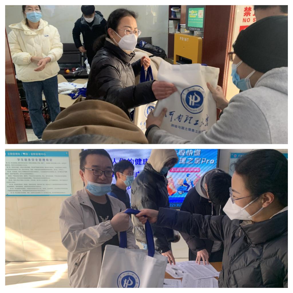 党委书记张红霞、毕业班辅导员胡佰林为400余名考研学子发放“考研加油包”,送去不一样的冬日暖阳。