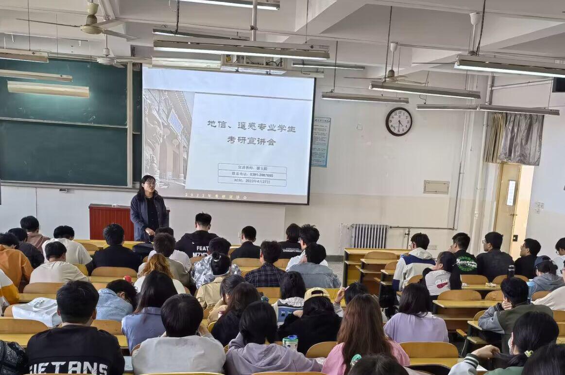 学生的考研积极性和备考科学性,4月27日下午,地信和遥感专业于院楼401教室召开考研宣讲会。本次宣讲会邀请研工办谢玉娟老师主讲,地理信息科学系程结海、王新闯老师和遥感科学与技术系殷楠老师以及2020级地信、遥感专业考研学生参加宣讲会。