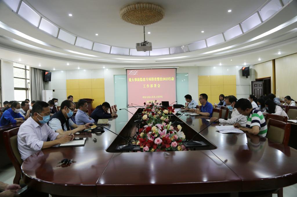 重大事故隐患专项排查整治 2023 行动实施方案》文件内容,并结合学院实际情况,对本次专项行动的工作目标、工作专班、排查整治主要内容和时间阶段等工作进行部署。袁占良强调,大家应高度重视隐患排查治理工作的重要意义,要全力以赴抓好各项责任措施落实,及时消除各类风险隐患,坚决遏制重特大事故,以高水平安全保障学院高质量发展。