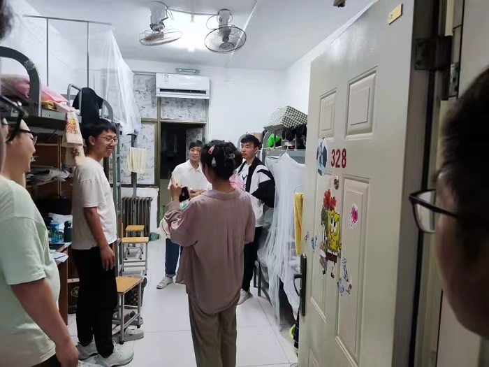 研究生第二党支部成员走访慰问研三同学宿舍,给毕业生送去叮嘱、关怀和祝福。