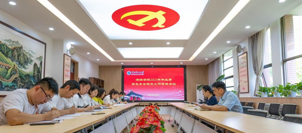 2023年毕业季学生安全稳定工作专题会议,院党委书记张红霞、党委副书记郭学鹏出席会议,全体专职兼辅导员参会。
