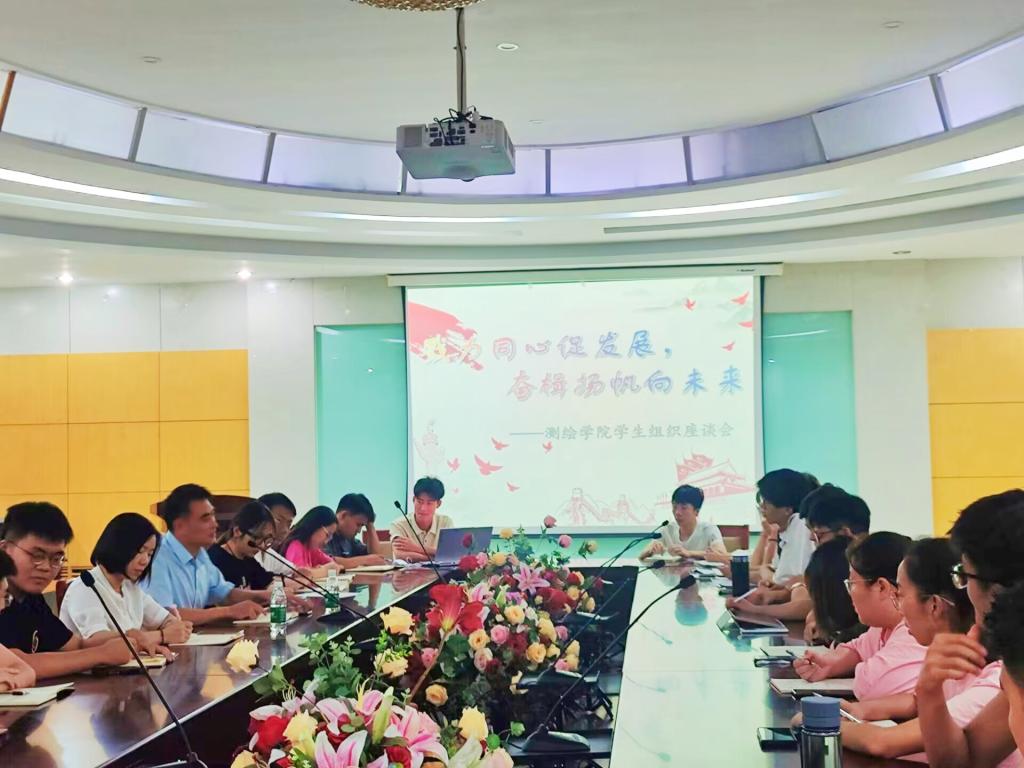 于6月17日下午在院楼101会议室召开团学干部座谈会。学院党委副书记郭学鹏、团委书记李静出席会议。院学生会、院团委、院青年志愿者协会、院青年宣传中心、班长联席会各学生代表共50余人参加会议。会议由团委书记李静主持。