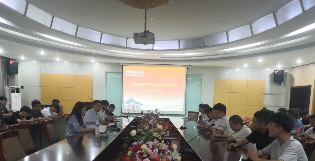 于院楼三楼会议室召开本月学生工作例会暨学生暑期管理工作会议。学院党委副书记郭学鹏、学工办主任丰习才、全体专兼职辅导员参加会议。会议由郭学鹏主持。