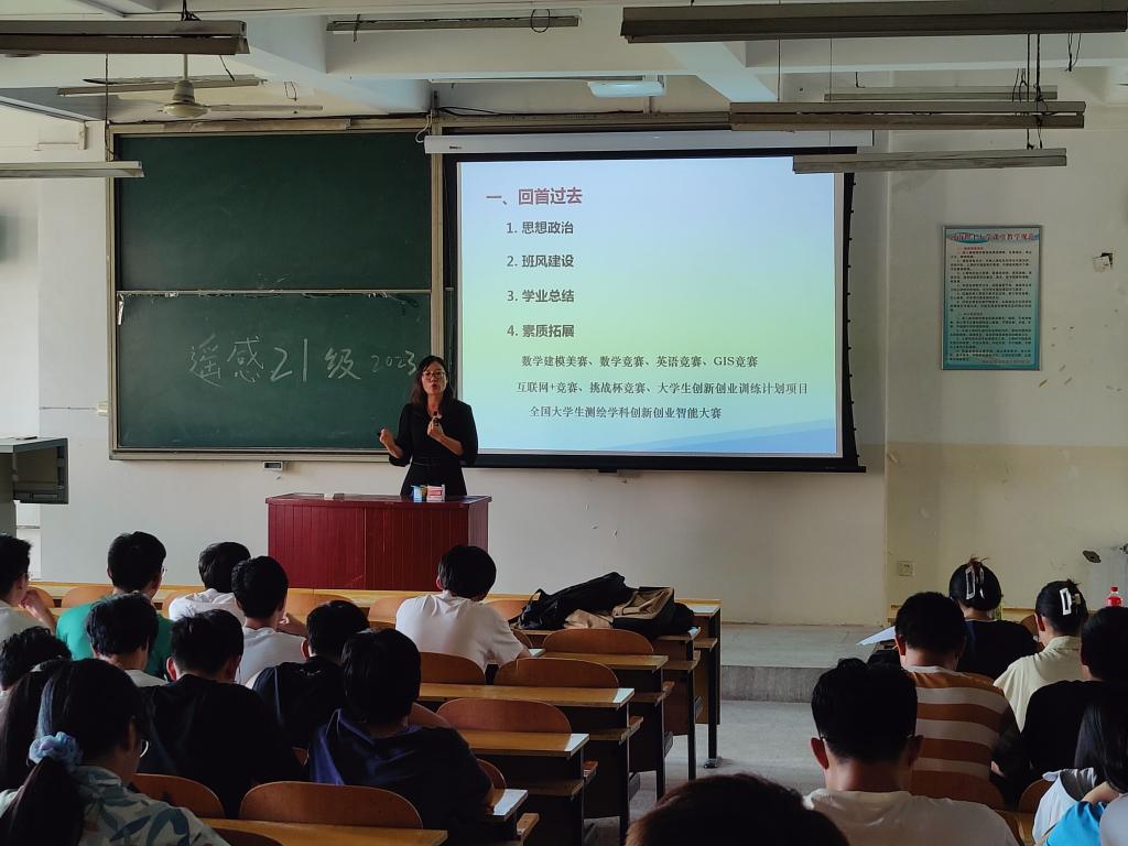 301教室举行遥感科学与技术专业21级学生开学第一课暨考研动员会,21级辅导员拓海燕、遥感专业班主任成晓倩和赵宗泽、学业导师马超和赵慧老师参加。