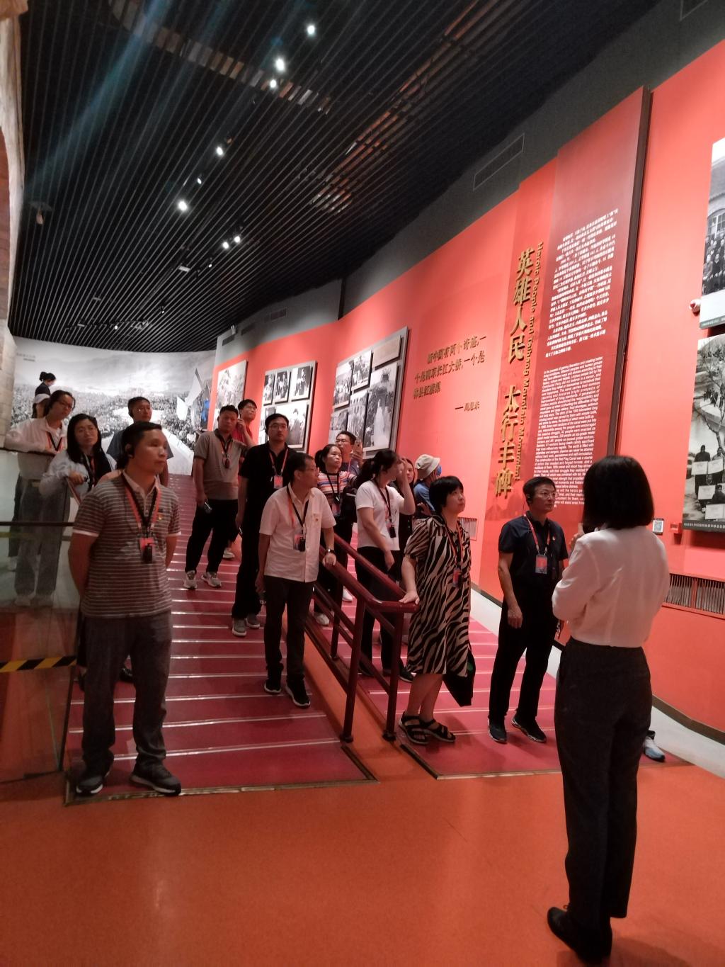 在红旗渠纪念馆,大家通过集中学习红旗渠的建设历史、建设过程,随着讲解员的讲解,大家集体追忆了修渠历程,感悟了精神伟力,砥砺着初心使命。参观结束后全体人员开展了访谈教学,《巍峨山碑·杨贵篇》,再现了林州人民在红旗渠修建过程的奋斗历程,深刻感悟到作为县委书记、共产党员的杨贵同志,用一生践行人民至上、执政为民的家国情怀,作为一名共产党员的责任、情怀和坚守。