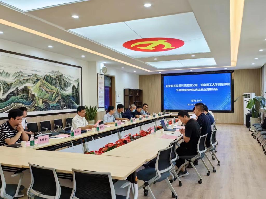 副校长金双根对北京航天驭星科技有限公司副总裁郭涛涛一行的到来表示热烈欢迎,介绍了学院在人才培养、科学研究以及“双一流”学科创建方面取得的成绩,特别强调了“河南理工一号”卫星发射成功后,建立卫星地面接收站的重要性。北京航天驭星科技有限公司总经理徐岩针对学校需求,详细介绍了卫星地面接收站的基建工艺和选址要求。双方与会人员就卫星地面接收站的相关事宜进行了深入讨论和交流。会议结束后,双方参会人员对地面接收站选址进行了实地考察。