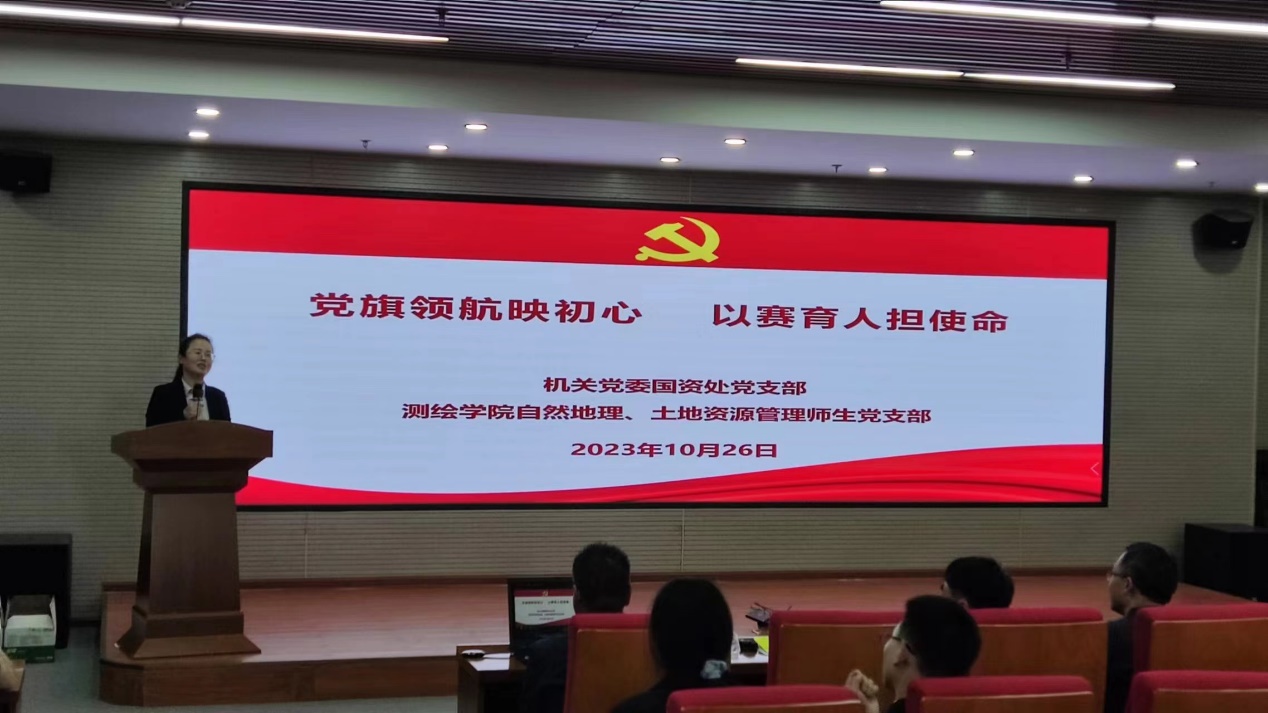 参加中国高校地理科学展示大赛总决赛的三支代表队以及土地管理等教工党支部、国资处党支部党员代表参加。
