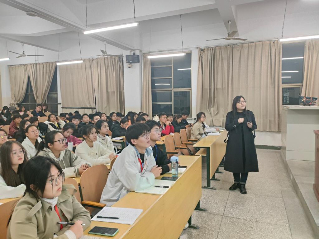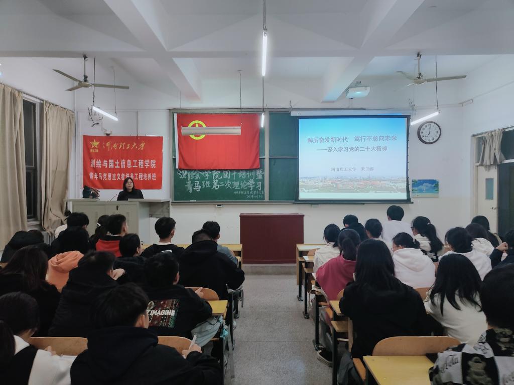 团委于院楼302教室举办深入学习党的二十大精神专题报告暨“青马工程”培训班第二次理论学习,邀请河南省青年理论宣讲专家米卫娜老师做党的二十大精神宣讲报告。院团委秘书处姚明扬主持了本次报告会,学院“青马工程”培训班全体学员和2023级团干聆听了她的报告。