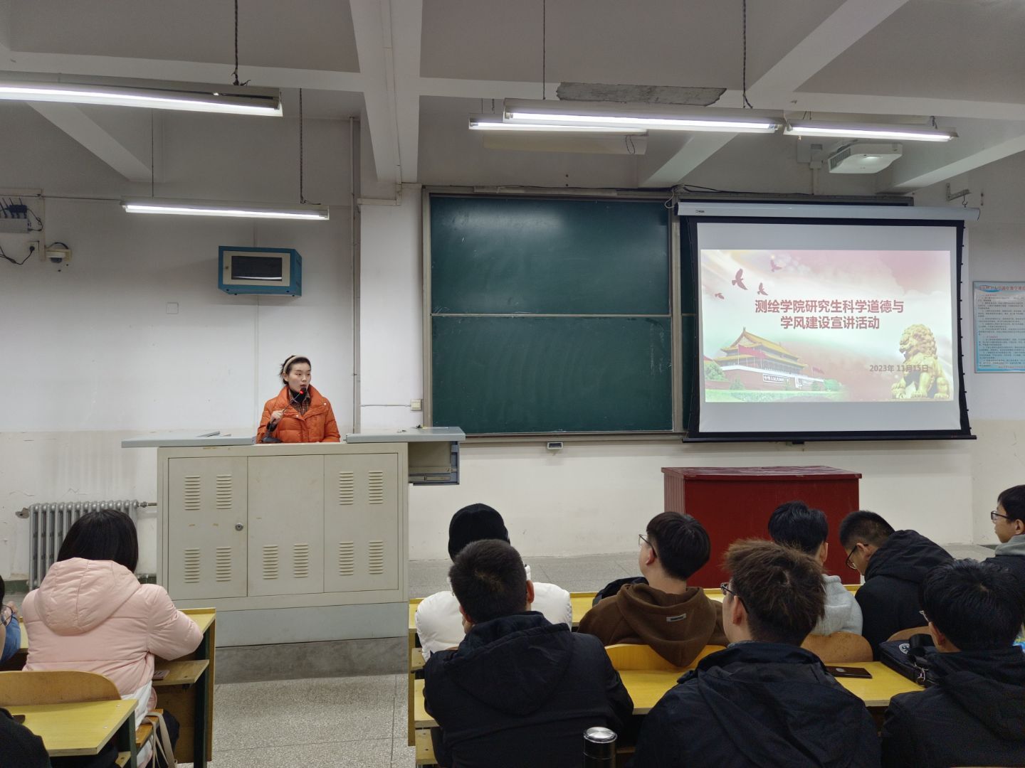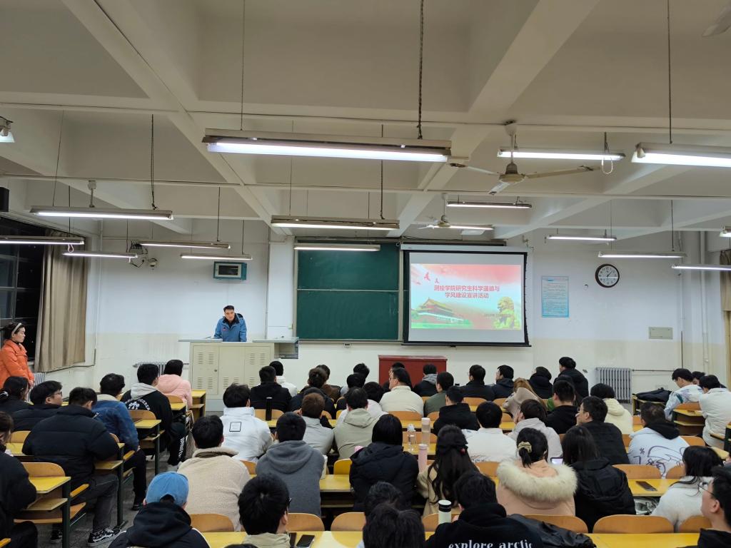 为引领广大研究生弘扬科学家精神、倡导科研诚信、涵养优良学风和营造良好学术环境,1115日下午在院楼301教室召开研究生科学道德与学风建设宣讲活动。由院党委副书记郭学鹏做宣讲,2023级全体研究生参加,辅导员范梦瑶主持会议。