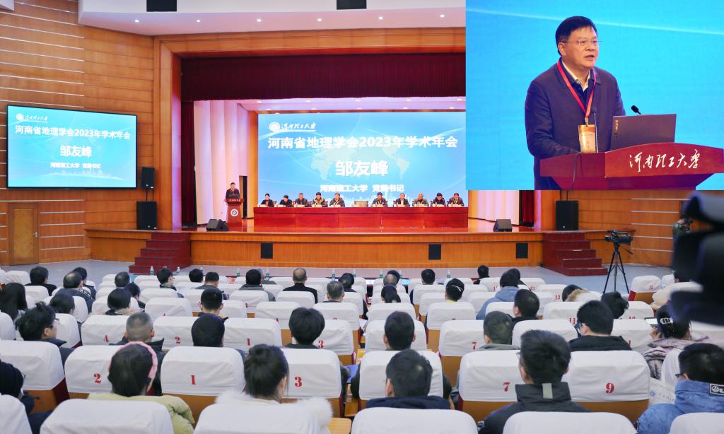 10日上午,河南省地理学会在明德楼音乐厅举行2023年学术年会开幕式,校党委书记邹友峰出席会议并致辞。邹友峰对参会的各位代表表示热烈欢迎,简要回顾了学校百年历史及办学成就,对动画疯