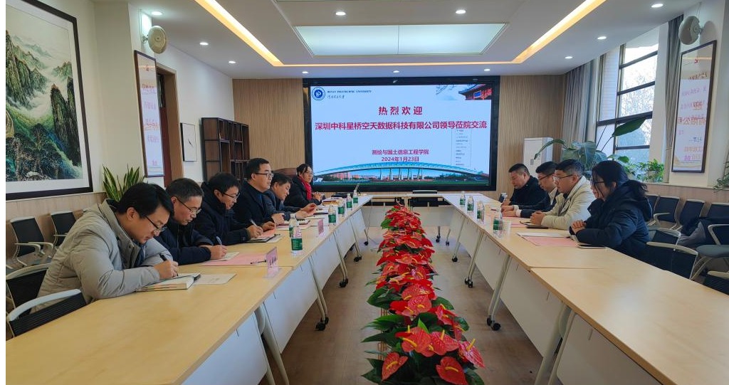 袁占良对尹大利一行来访表示欢迎,并简要介绍了学校的历史沿革、办学规模和办学成就,着重介绍了学院在人才培养、科学研究以及一流学科创建方面的成就。他表示,中科星桥作为我国商业天地链路领航者,致力于空天大数据科创应用和空天地一体化建设,希望双方能此次交流为契机,继续加强沟通与合作,实现校企共赢,共促发展。