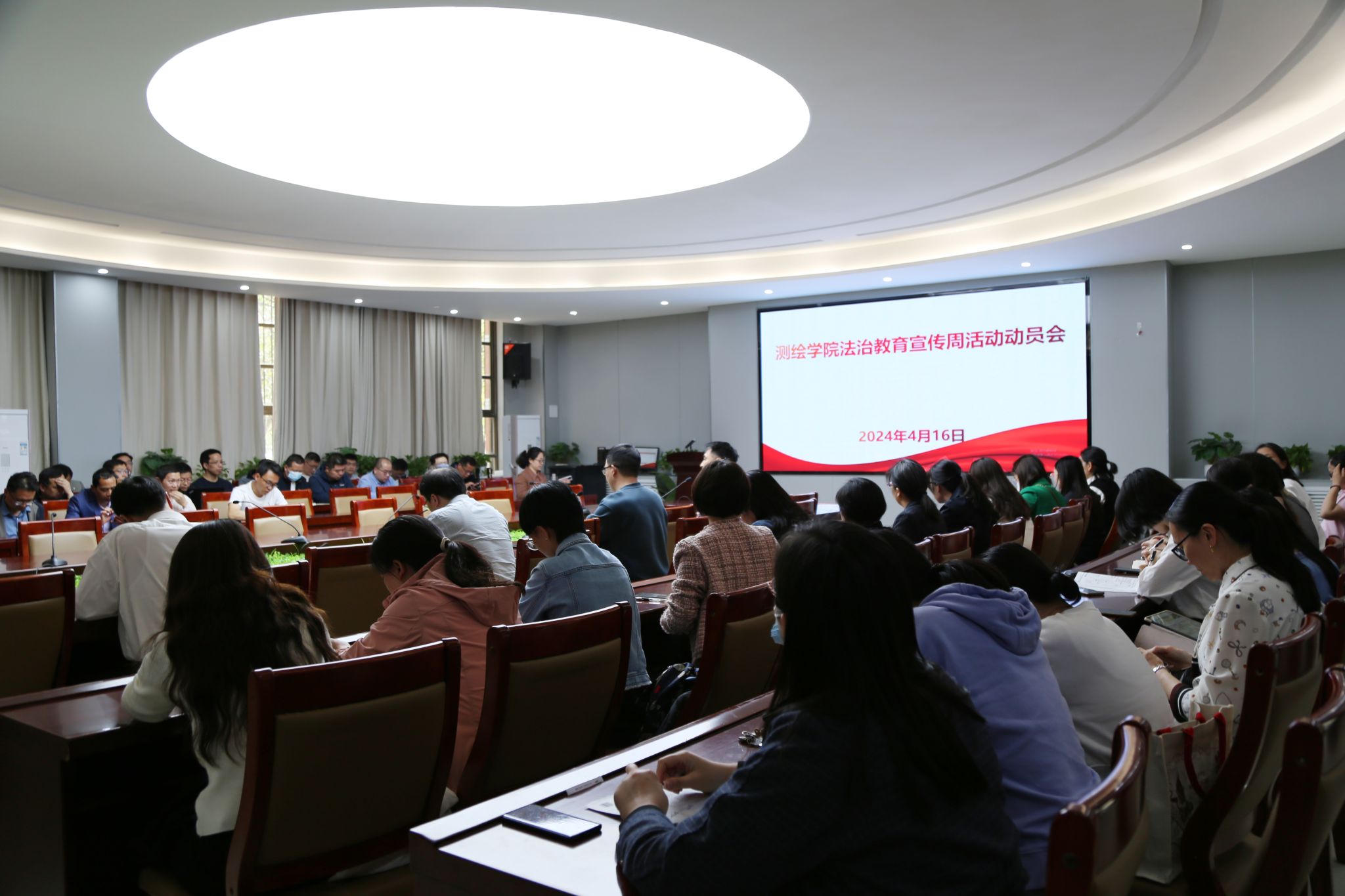 在测绘楼101会议室召开法治教育宣传周活动动员会。会议由郭学鹏主持,全体教职工参加会议。