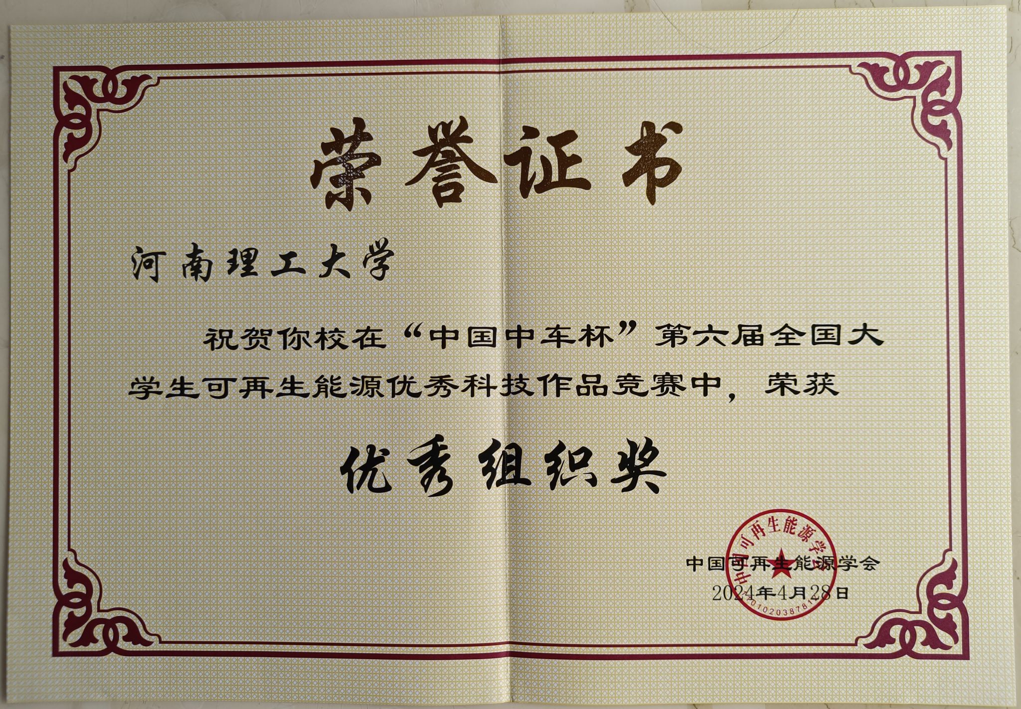 学生荣获一等奖2项,学校获得优秀组织奖。大赛由中国可再生能源学会主办,中国中车、河海大学、吉林大学和厦门大学等多家企事业单位共同举办。自2023年9月份正式启动以来,吸引了全国326所高校2624支队伍,15000多名大学生报名,1956项作品参赛。