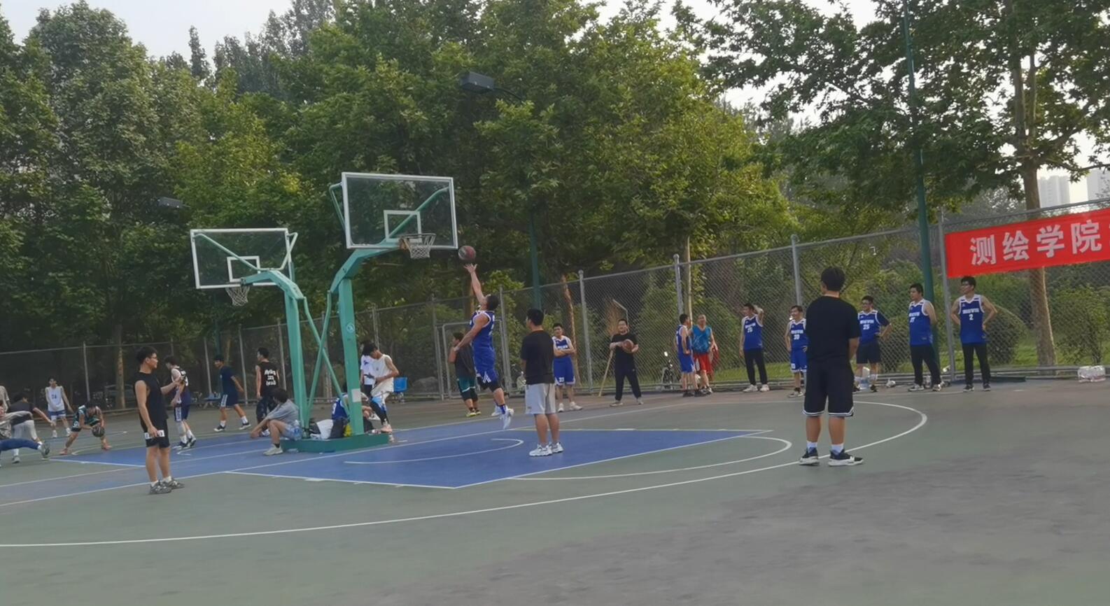 工会于西区篮球场成功举办主题为“测绘教工男篮·勇攀高峰、勇立潮头、勇闯天涯”的教职工篮球趣味活动。