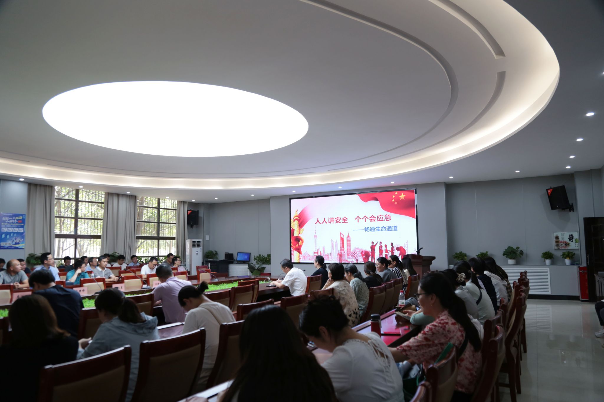 首先,学院党委书记张红霞以“人人讲安全、个个会应急——畅通生命通道”为主题,从安全意识提升、安全知识学习、安全技能掌握三个方面为全院教职工讲授了一堂内容全面且丰富的安全生产专题教育课。她指出,一是全体教职工要提高站位,把安全放在首要位置,筑牢校园安全防线;二是要坚持“预防为主 消防结合”的安全理念,多方面的学习安全知识,不断提升安全意识和防范能力。最后,全体教职工集中观看了2024年全国“安全生产月”活动主题宣传片《畅通生命通道》,以真实的案例加强警示教育,进一步提高教职工的安全防范意识。