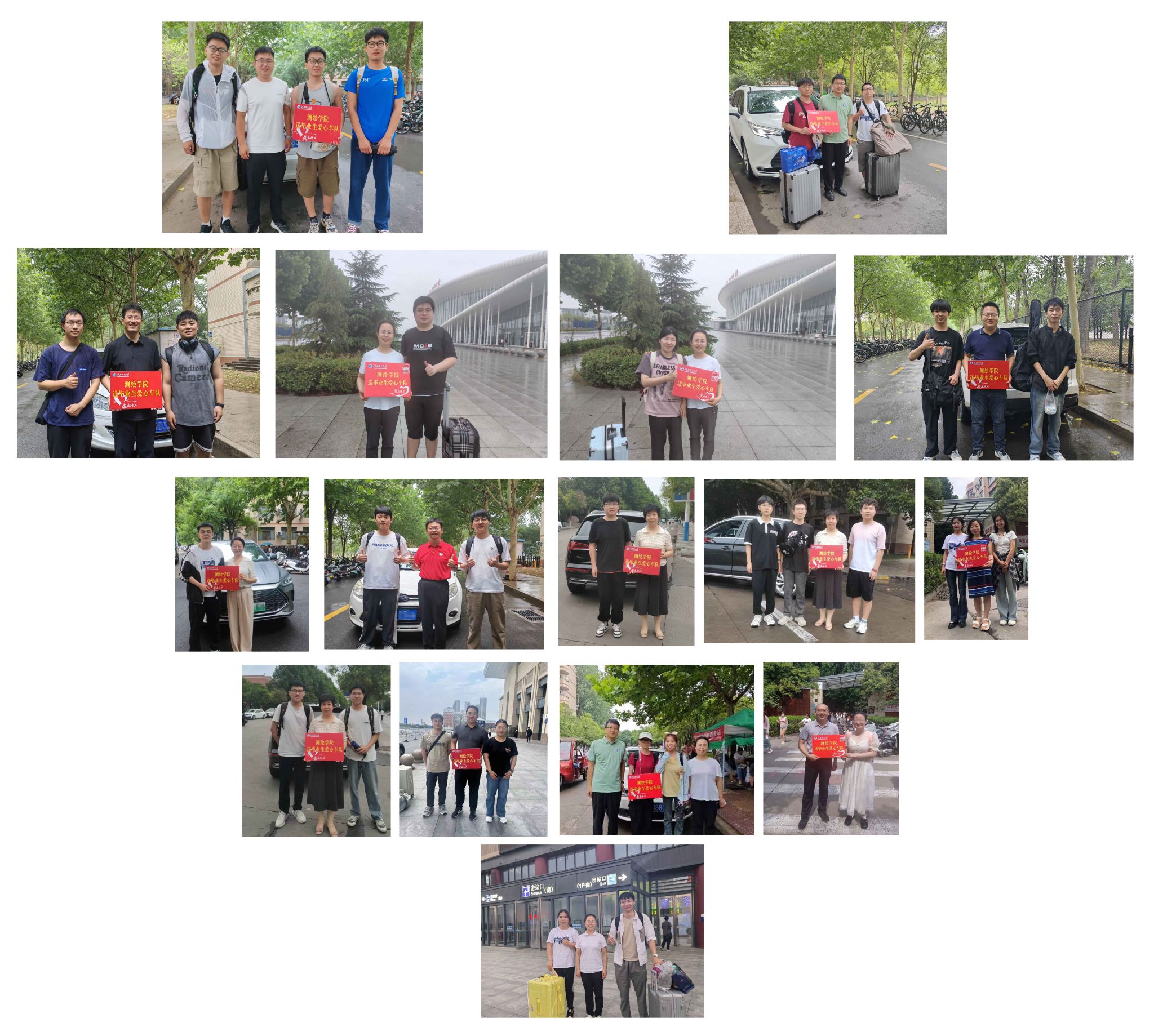 送君一程,盼君坦途。由学院领导、辅导员、教工志愿者组成的爱心车队安全有序地将100余名毕业生送达约定地点。送站途中,老师们与学生亲切交谈,或衷心祝愿,或深情话别。一句句鼓励,一次次拥抱,一张张合影,印刻着老师们对同学们的真切祝福。