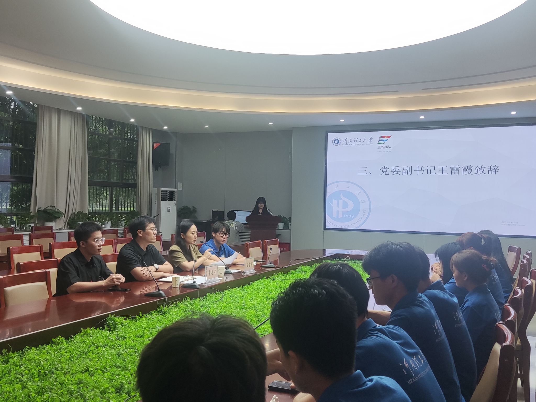 2024年暑期“三下乡”社会实践活动出征仪式在院楼101会议室举行。院党委副书记王雷霞、团委书记丰习才及各实践团成员近50人参加了出征仪式。