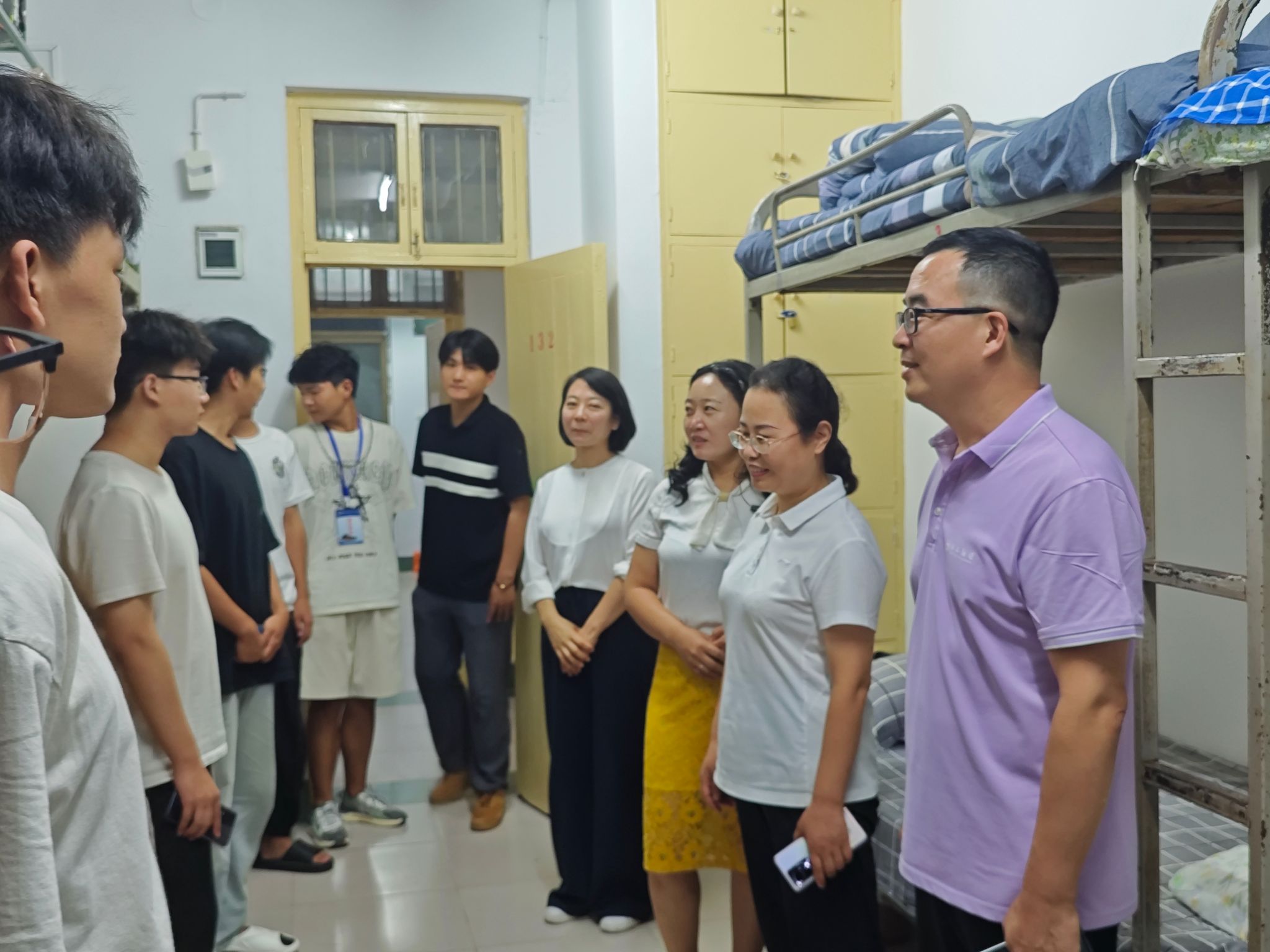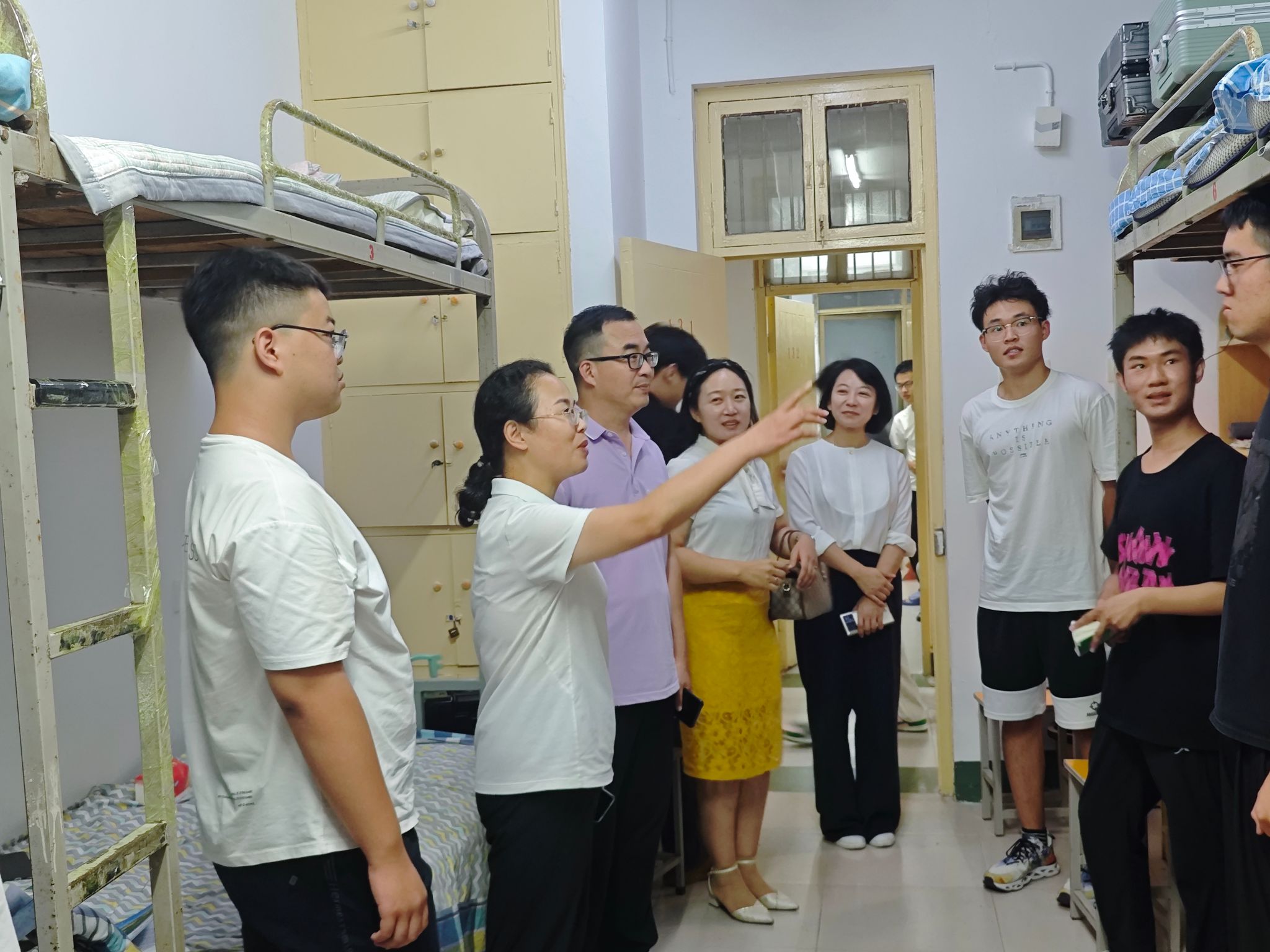 党委书记张红霞、院长袁占良、党委副书记王雷霞、学工办负责人拓海燕和24级新生辅导员以及全体班主任一同深入大一新生宿舍走访慰问。