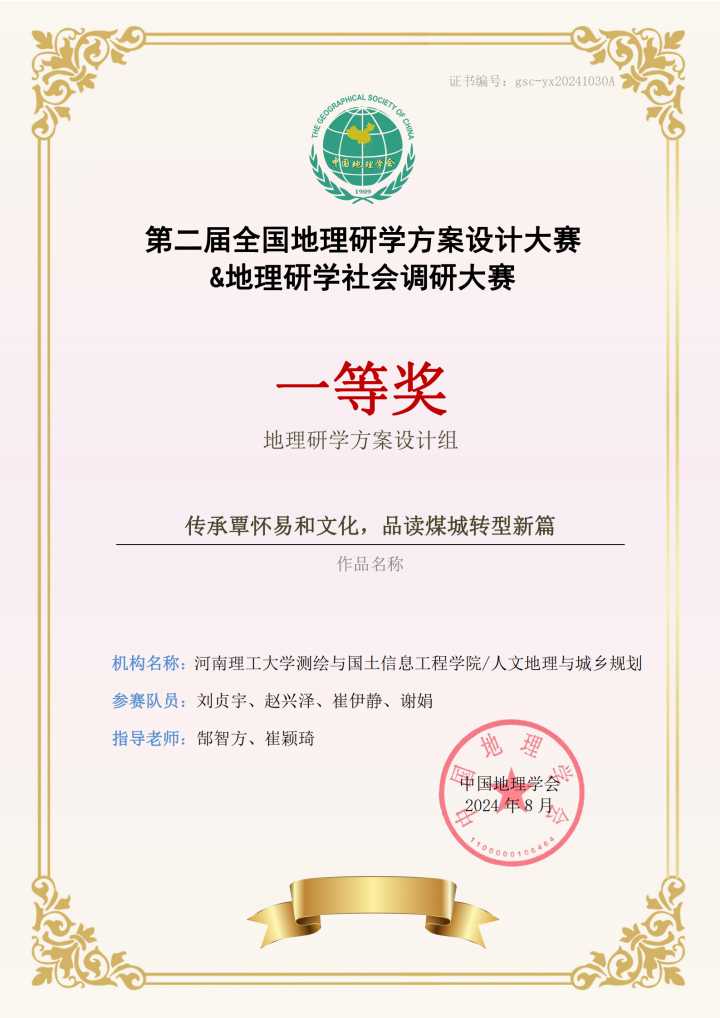 在人文地理组赛道,在郜智方、崔颖琪两位老师的指导下,由刘贞宇、赵兴泽、崔伊静、谢娟完成的《传承覃怀易和文化,品读煤城转型新篇》获得地理研学方案设计组一等奖;由常春勤、陈小素两位老师指导,袁欣欣、李俊霞、雷丁、高衡完成的《丝路·茶道·运河——探三脉交汇古韵,研洛阳传承新篇》获得地理研学方案设计组二等奖;自然地理组赛道,由秦小静、乔卫芳两位老师指导,张旭东、王本闯、刘亿琛、包如意完成的《黄河安澜孕华北生态保护利千秋——沿黄河郑汴洛研学课程》获得地理研学方案设计组二等奖。这些作品深入挖掘了地域文化的独特地理与生态内涵,不仅展现了动画疯