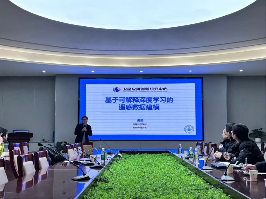 进行学术交流,并在学院101会议室作“基于可解释深度学习的遥感数据建模”学术讲座。会议由学院院长袁占良主持,杨磊库、蔡太义、薛华柱、王宏涛等教师代表及部分本科生、研究生参会。