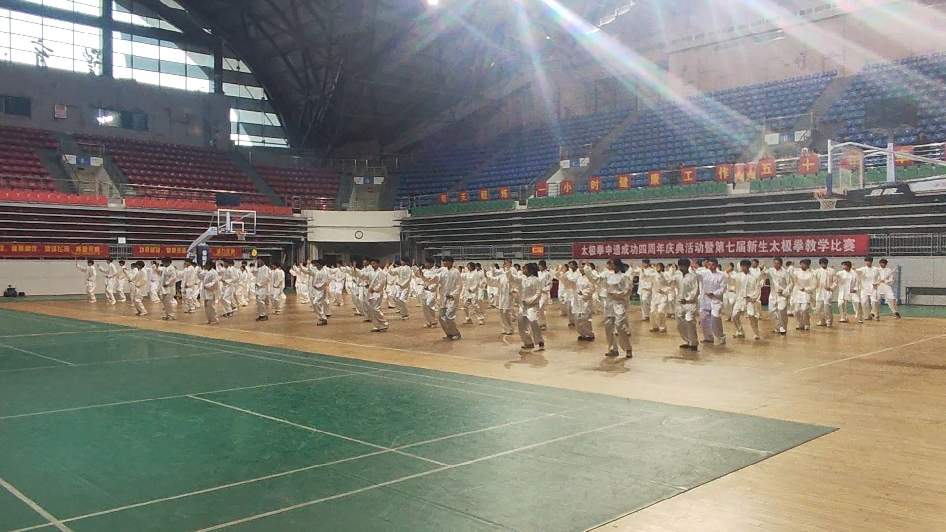 参赛队员积极准备,刻苦训练,争分夺秒,毫不懈怠,严寒天气下仍以最饱满的姿态坚持训练。赛场上,120名测绘学子腾挪转移间将陈氏太极拳精要十八式含蓄内敛、急缓相间、行云流水的拳术风格展现得淋漓尽致,悠远绵长的高山流水音乐更衬托出太极拳的意境深远、韵味十足。他们的表演刚柔并济、动静结合,展现出太极拳独有的魅力和哲学。