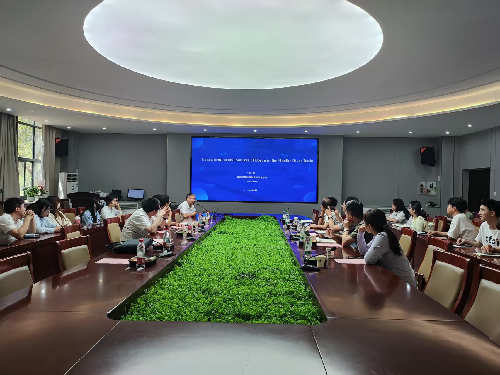 副院长柴华彬致辞并介绍了学院整体情况。黄河流域研究中心主任乔旭宁详细介绍了中心在流域资源保护与城乡高质量发展领域的研究成果及未来规划。学术交流过程中,河南省科学院地理研究所所长鲁鹏做了题目为“环境考古中的古代人地观”的学术报告,从历史视角解析了黄淮流域人地关系的演变,强调环境考古对现代自然资源管理的启示;信阳师范大学地理科学学院副院长颜俊围绕“任务驱动式科研让流域平台‘动’起来”进行交流,提出通过任务导向的科研模式激发流域监测平台的协同创新活力,强调了流域的重要性、待研性和话语权;许昌学院地理与空间信息学院院长闫慧的报告“淮河流域地表水硼污染及源解析”,结合实地数据揭示淮河流域地表水硼污染成因,为流域水环境治理提供了科学依据;洛阳师范学院地理与旅游学院副院长张小虎聚焦“地理空间视角下河南省非物质文化遗产传承保护研究”主题,探讨了地理信息技术在文化遗产保护中的应用潜力。最后,与会专家围绕科研协同平台建设、跨学科合作机制与数据共享平台搭建及人才培养等内容进行了深入研讨。