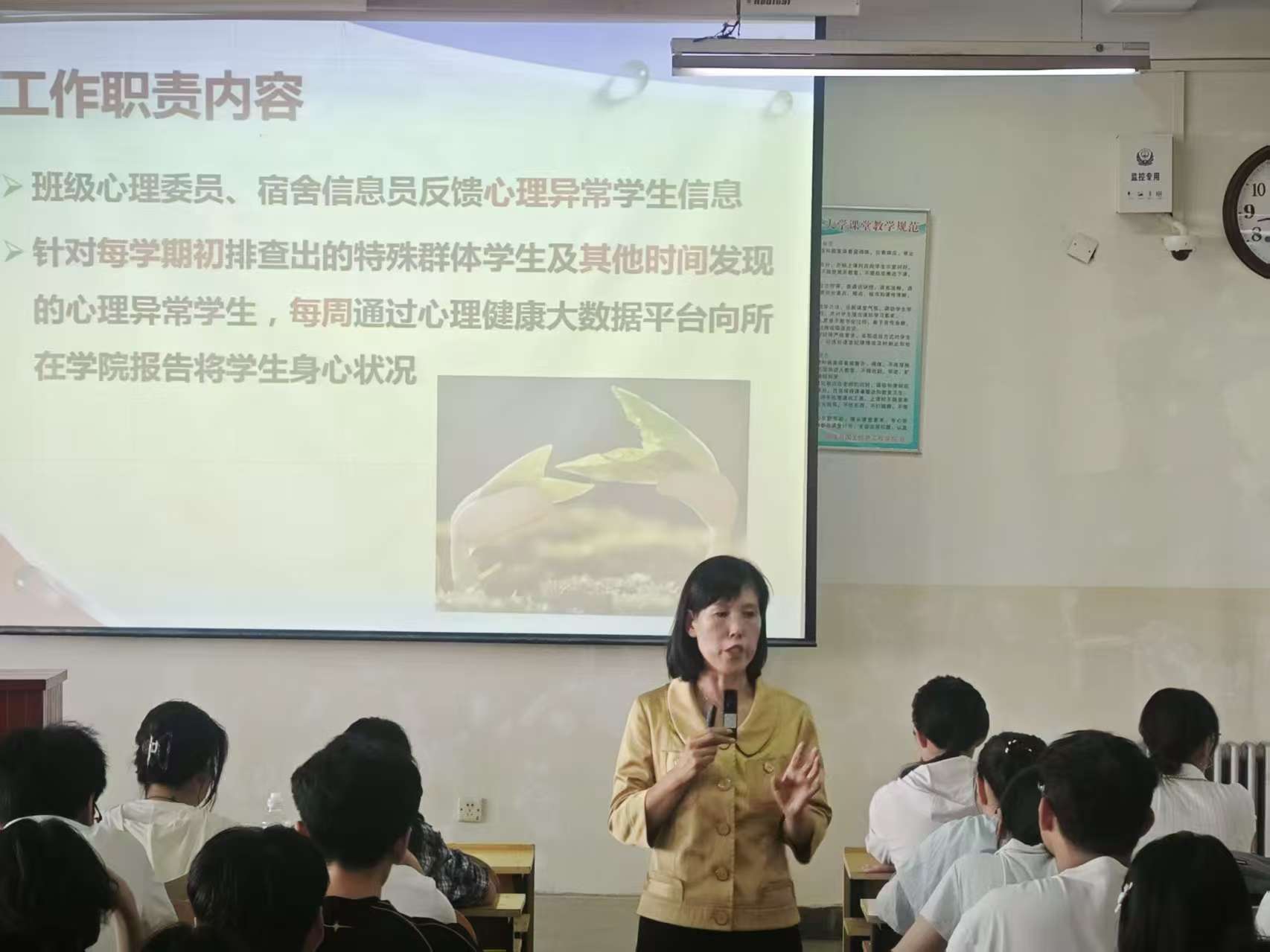 在院楼401会议室开展了“生命守门人”专题培训。本次会议由学院研究生、本科生22-24级全体心理委员和24级全体宿舍心理信息员共同参加,由心理健康教育中心胡丽霞老师担任主讲。