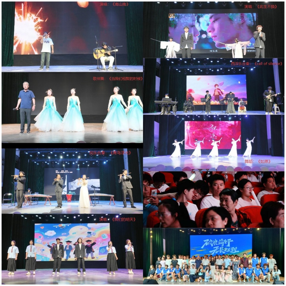晚会节目精彩纷呈,舞蹈《拉丁爵跃》热情奔放,舞者灵动身姿尽显青春活力;歌曲《此生不换》旋律舒缓,勾起同窗美好回忆;西洋乐合奏《Call of Silence》音符激昂,奏响青春奋进旋律;《燕归巢》曲调温情,唱出毕业生对母校眷恋。朗诵《青春答卷》,学子以铿锵之声诉说奋斗坚守;舞蹈《IYKYK》步伐轻快,踏出青春活力节拍 ;现场伴奏演唱的《世界赠予我的》,传递对生活的热爱感恩;群舞《如愿》舞姿优雅,描绘对未来憧憬;吉他弹唱《南山南》与民乐合奏《青鸟·浮光》,以独特旋律带来视听享受。