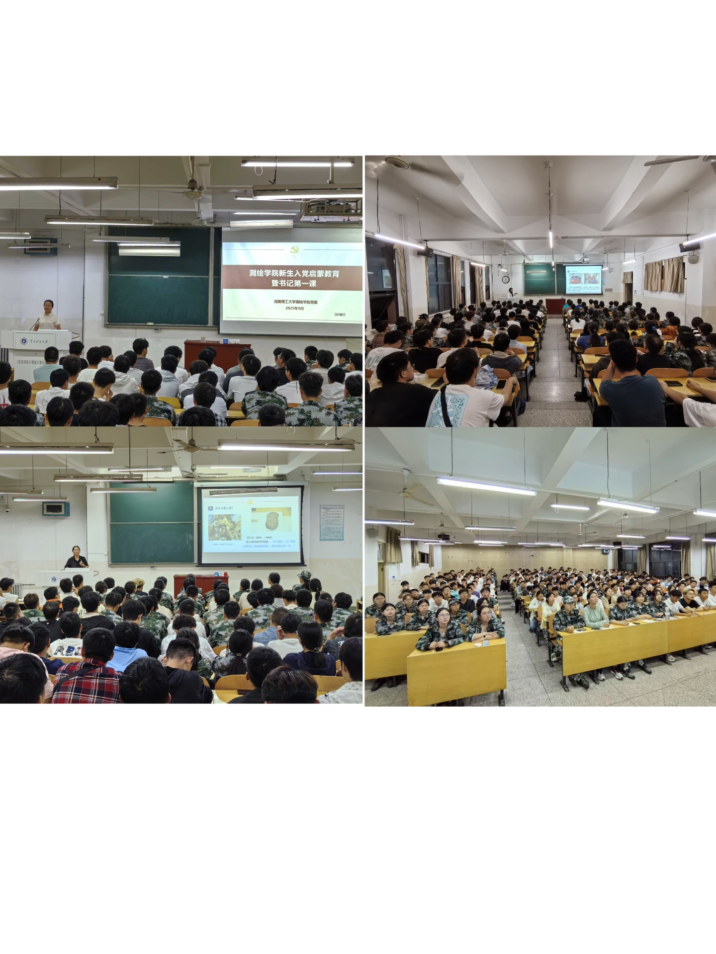 主讲人围绕“中国共产党的初心和使命”“为什么要入党”“怎样才能入党”以及“怎样做一名合格的中共党员”四个方面内容展开。讲座中,各主讲教师系统阐述了党的性质、宗旨、指导思想和党员的责任担当,鼓励同学们把个人成长融入党和国家的事业中,用实际行动践行初心使命。老师们结合方志敏、钱学森、黄文秀等一批优秀共产党员坚守信仰、无私奉献的感人事迹,以及焦作援鄂医疗队员在抗疫一线“入党”的生动故事,激励同学们从党史和先进典型中汲取精神力量,树立共产主义远大理想,积极向党组织靠拢。老师们强调,中国共产党是一个纯洁先进的队伍,加入党组织不仅是荣誉,更意味着心灵的净化与责任的担当。现场同学们认真聆听、反响热烈,多次响起热烈掌声。最后,老师们详细讲解了入党流程、入党申请书的书写规范及思想汇报要求,引导同学们端正入党动机,以实际行动践行“热爱祖国、忠诚事业、艰苦奋斗、无私奉献”的测绘精神,争取早日成为一名合格的共产党员。