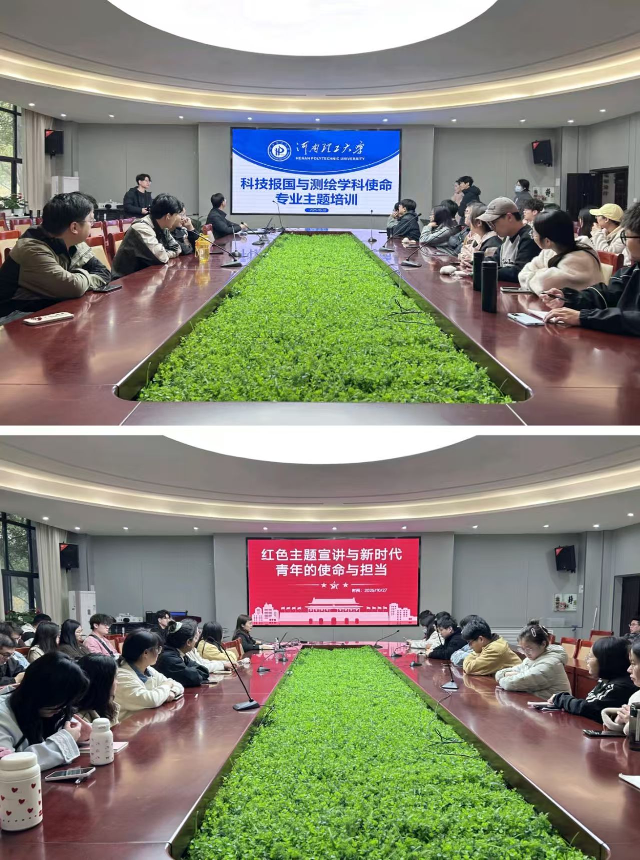 先后召开两场专题会议,并同步开展新闻宣传队伍培训,通过思想引领、专业赋能、师生联动的方式,为培养兼具家国情怀与专业能力的新时代测绘人才凝聚合力。其中,两场专题会议分别围绕“红色主题宣讲与新时代青年的使命和担当”“科技报国与测绘学科使命”展开,新闻宣传队伍培训则聚焦“校园新闻写作规范”“活动素材采集技巧”进行教学,指导骨干精准捕捉会议亮点、用青年语言讲好测绘故事,为后续工作筑牢基础。