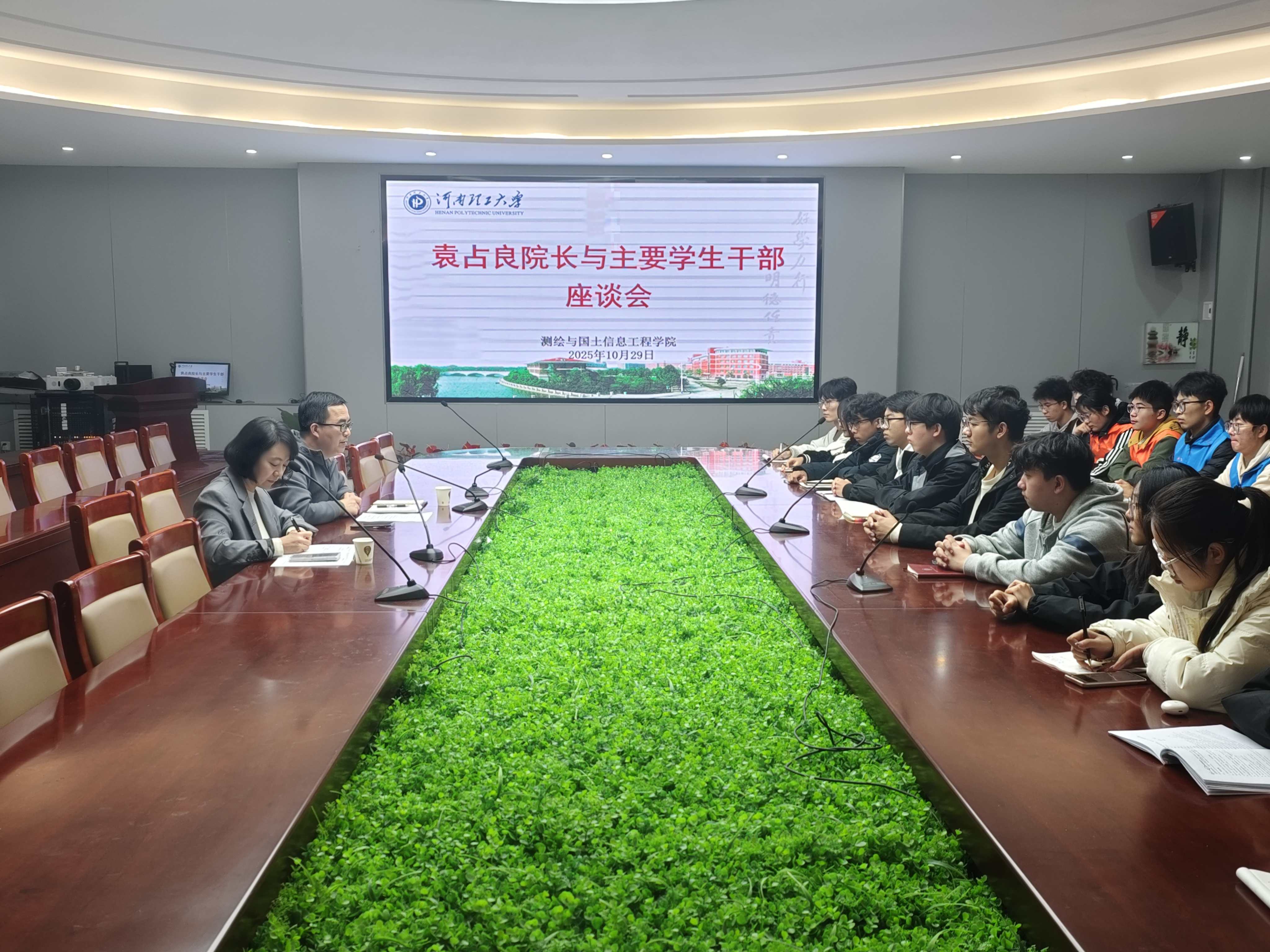 院长袁占良与学生干部座谈会于院楼101会议室召开。学工办副主任拓海燕及主要学生干部代表参加。