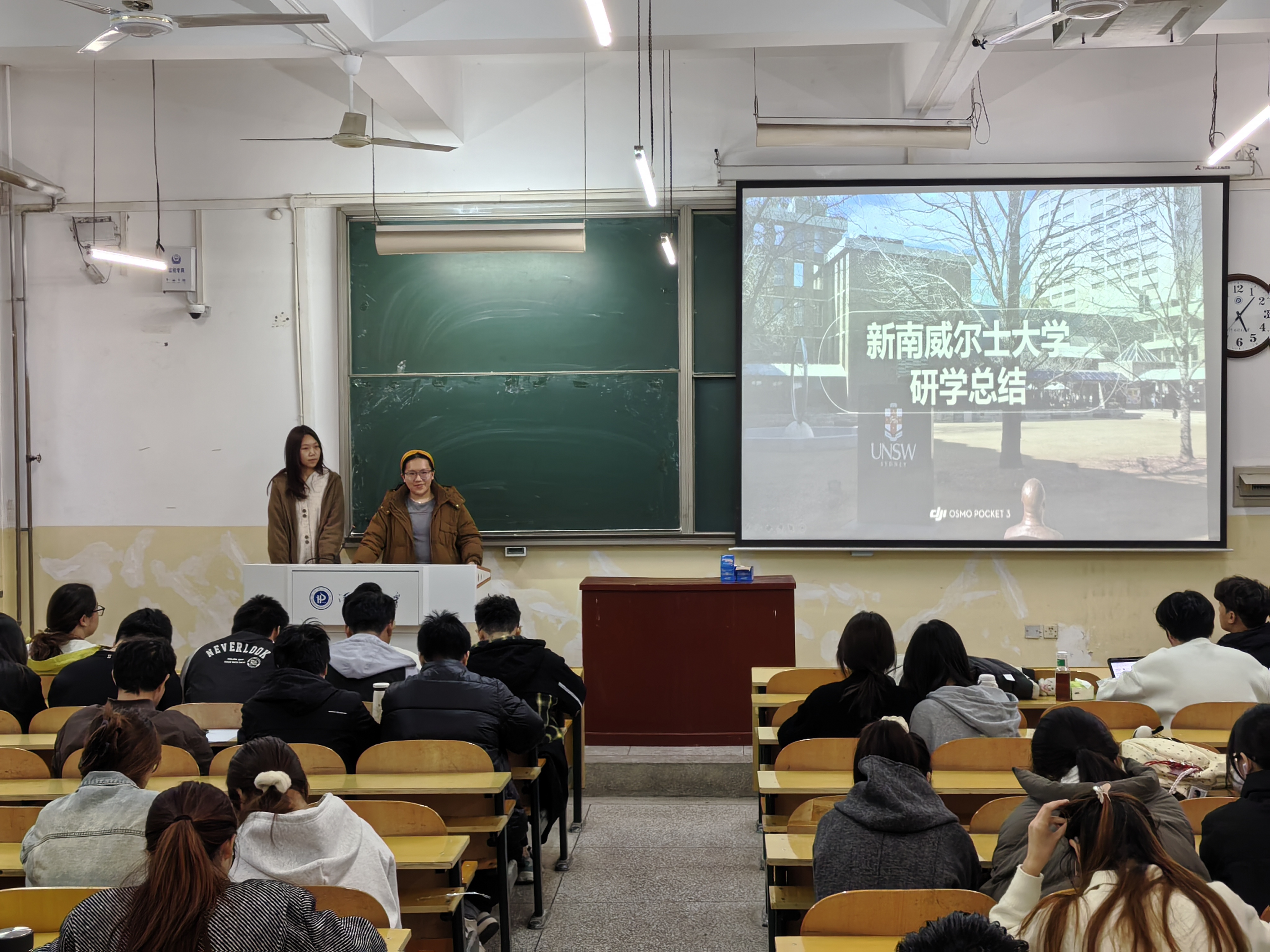 在院楼103、301教室开展了澳大利亚研学经验交流分享会。活动邀请了2025年暑期到新南威尔士大学研学的优秀学生代表与2023级学生交流并分享经验。交流会由2023级辅导员胡佰林主持。