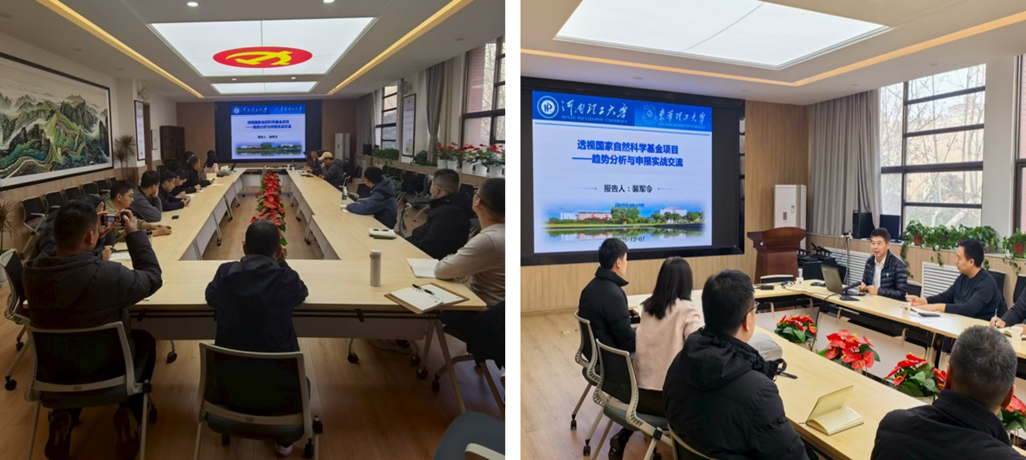 在二楼会议室召开了2026年国家自然科学基金申报辅导会。学院邀请东华理工大学裴军令研究员作题为《透视国家自然科学基金项目——趋势分析与申报实战交流》的辅导报告。会议由副院长闫伟涛主持。