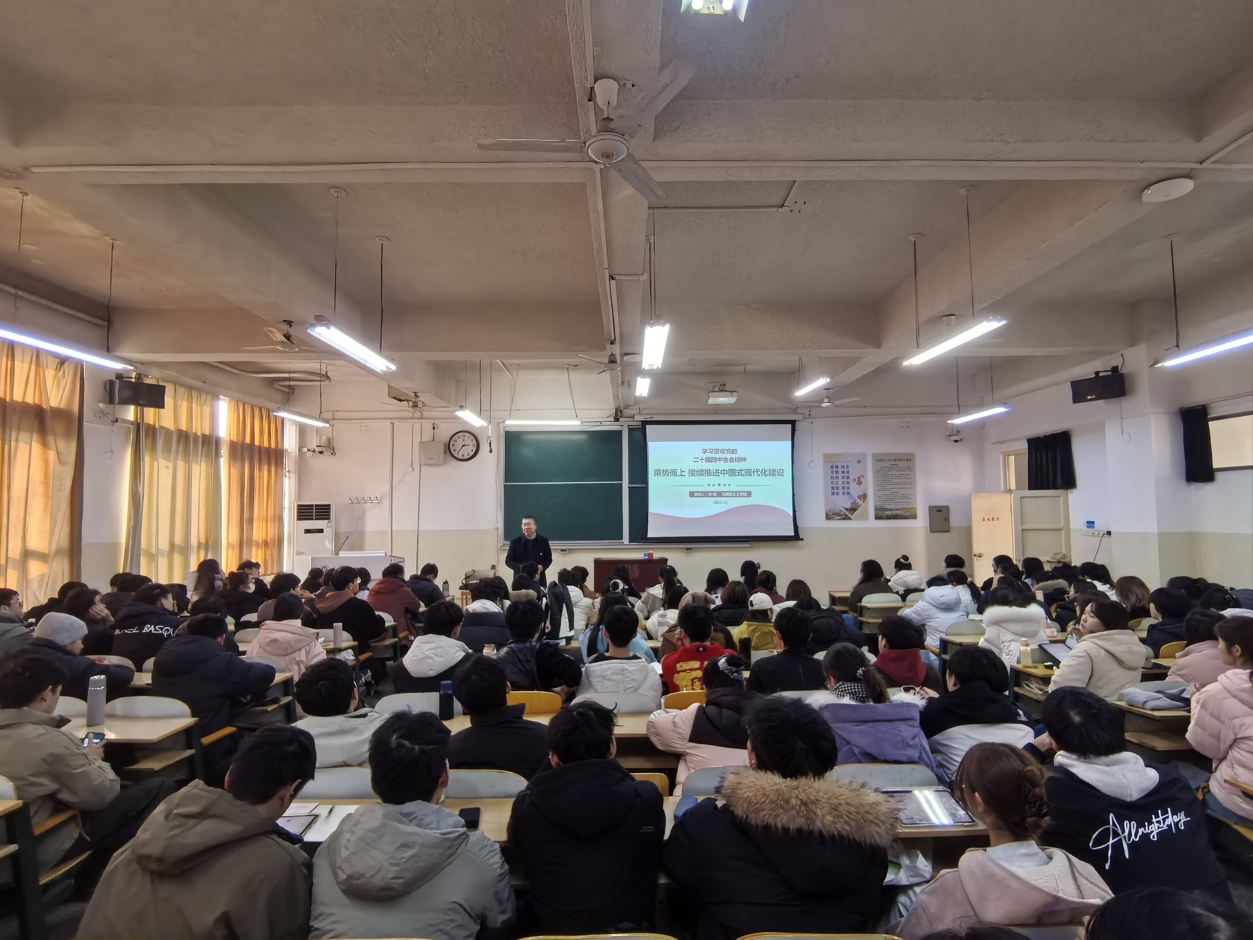 邀请校宣讲团骨干成员刘刚教授给2023级学生举行一场 “乘势而上,接续推进中国式现代化建设”党的二十届四中全会精神报告会,会议由2023级辅导员胡佰林主持。