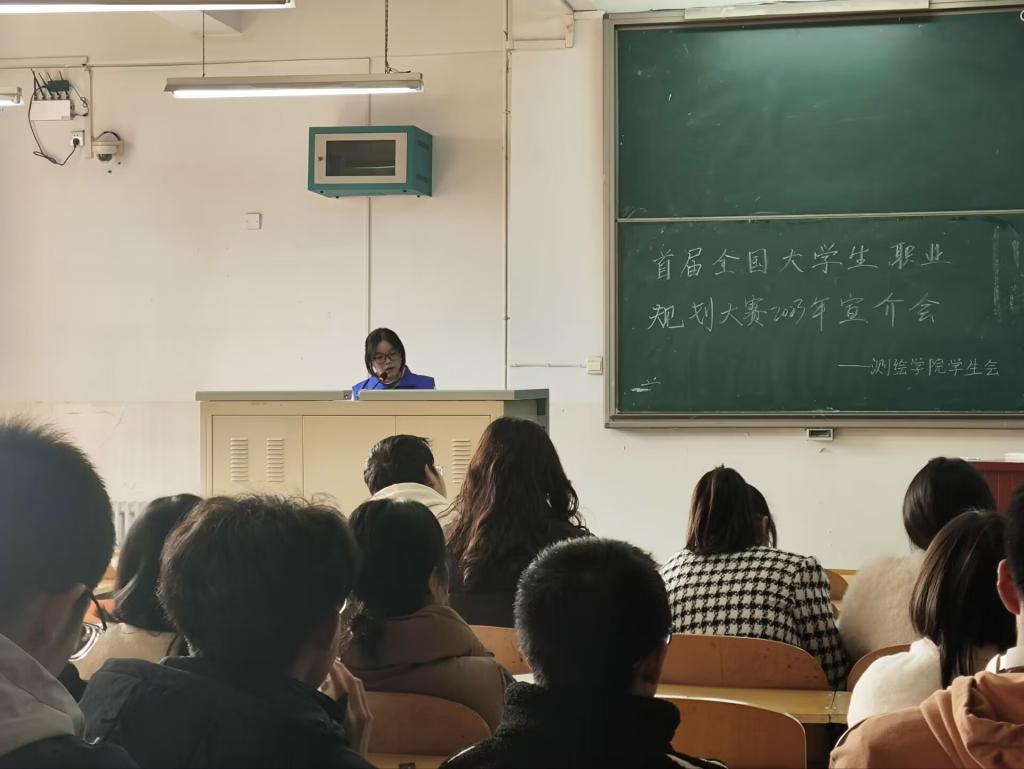 于院楼301教室举办了首届大学生职业规划大赛宣介会。学院预参赛选手、各班组织委员、部分班级学生等70余人参加本次活动。大会由院学生会办公室成员张梦园进行主持。