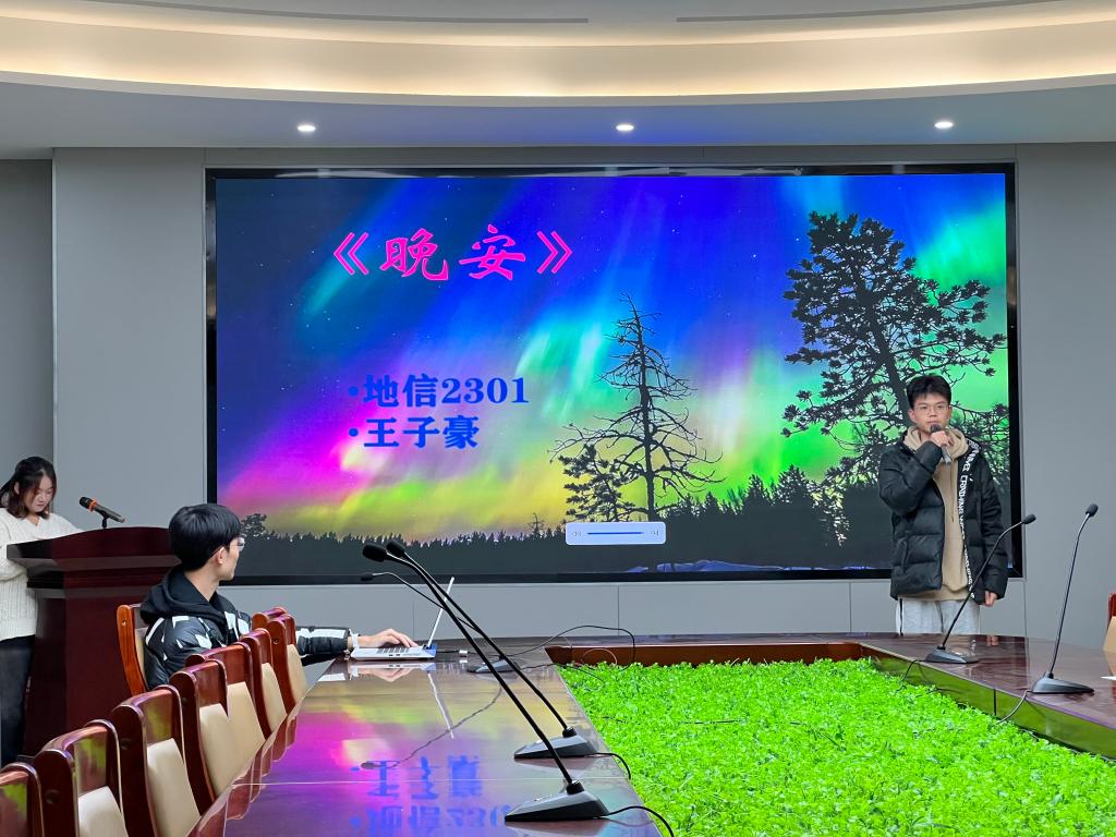 声乐大赛比赛在《老男孩》深情的旋律声中拉开帷幕。“微微就是秋天里每片落叶,微微就是彩虹里每滴雨点”地信2302何一含的《微微》以积极乐观的歌词、活泼的旋律唱出了观众们对生活的热爱。测绘2203邓钦濠以真挚动人的歌声完美诠释了《十万毫升泪水》中面临困境时的无助与悲伤,让观众们在欣赏音乐的同时,深刻感受到了情感的力量,营造出了一场视听盛宴,将比赛推向高潮。选手们带着自己对歌曲的理解,剖析每一个音符,播种每一个音域,释放青春魅力,传递音乐力量,深受评委喜爱,赢得了观众的阵阵掌声。经过两小时的激烈角逐,最终王子豪和张柬之荣获一等奖,胡誉文、邓钦濠和白菲儿夺得了二等奖,李沐禹、陈若妍、何一含、郑紫钰和史晓晶取得了三等奖。