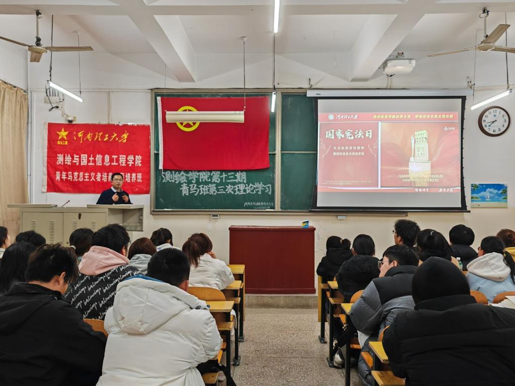 团委综合办公室于测绘院楼302召开第十三期“青马工程”培训班第三次理论学习,邀请学校党的二十大精神专题宣讲团成员、文法学院法学系副主任何平作普法宣讲报告。会议由秘书处范欣雨主持,动画疯