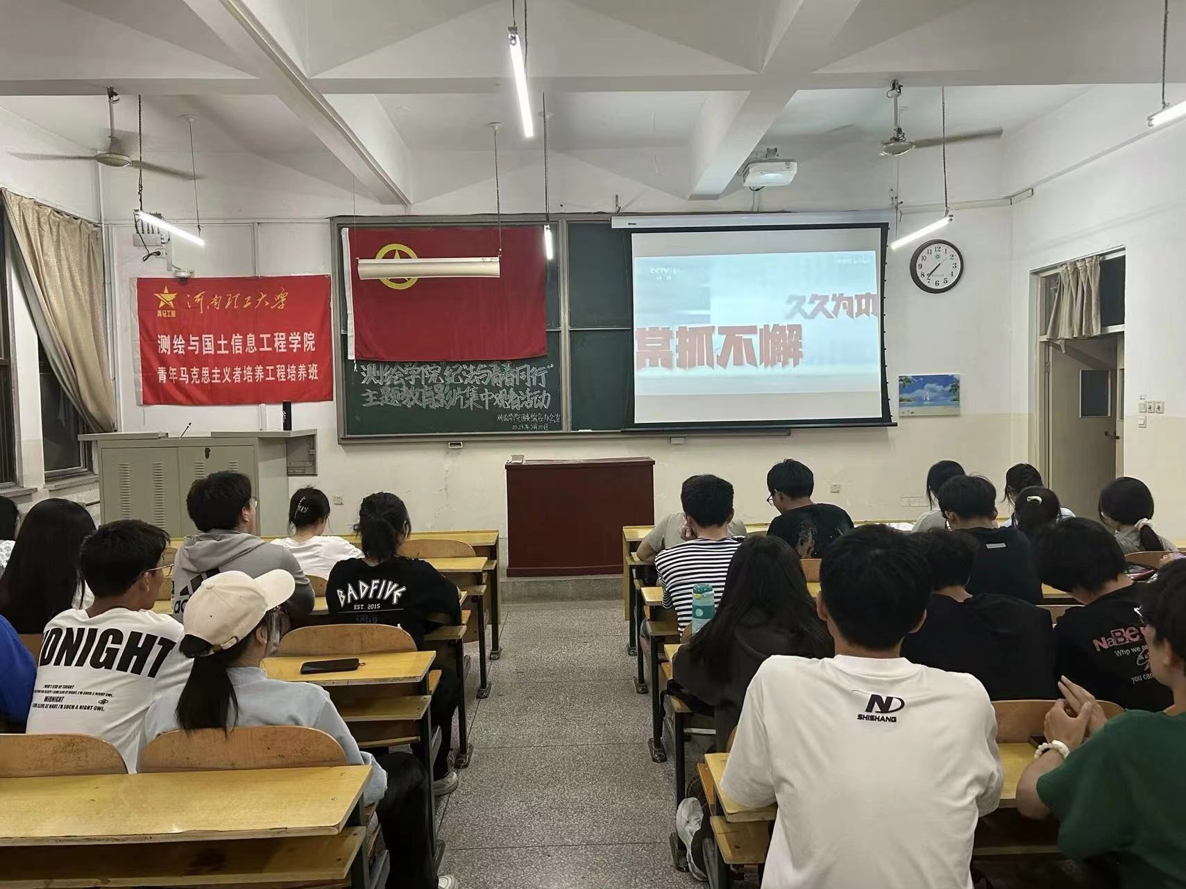 302教室组织观看纪法教育纪录片《持续发力,纵深推进》。