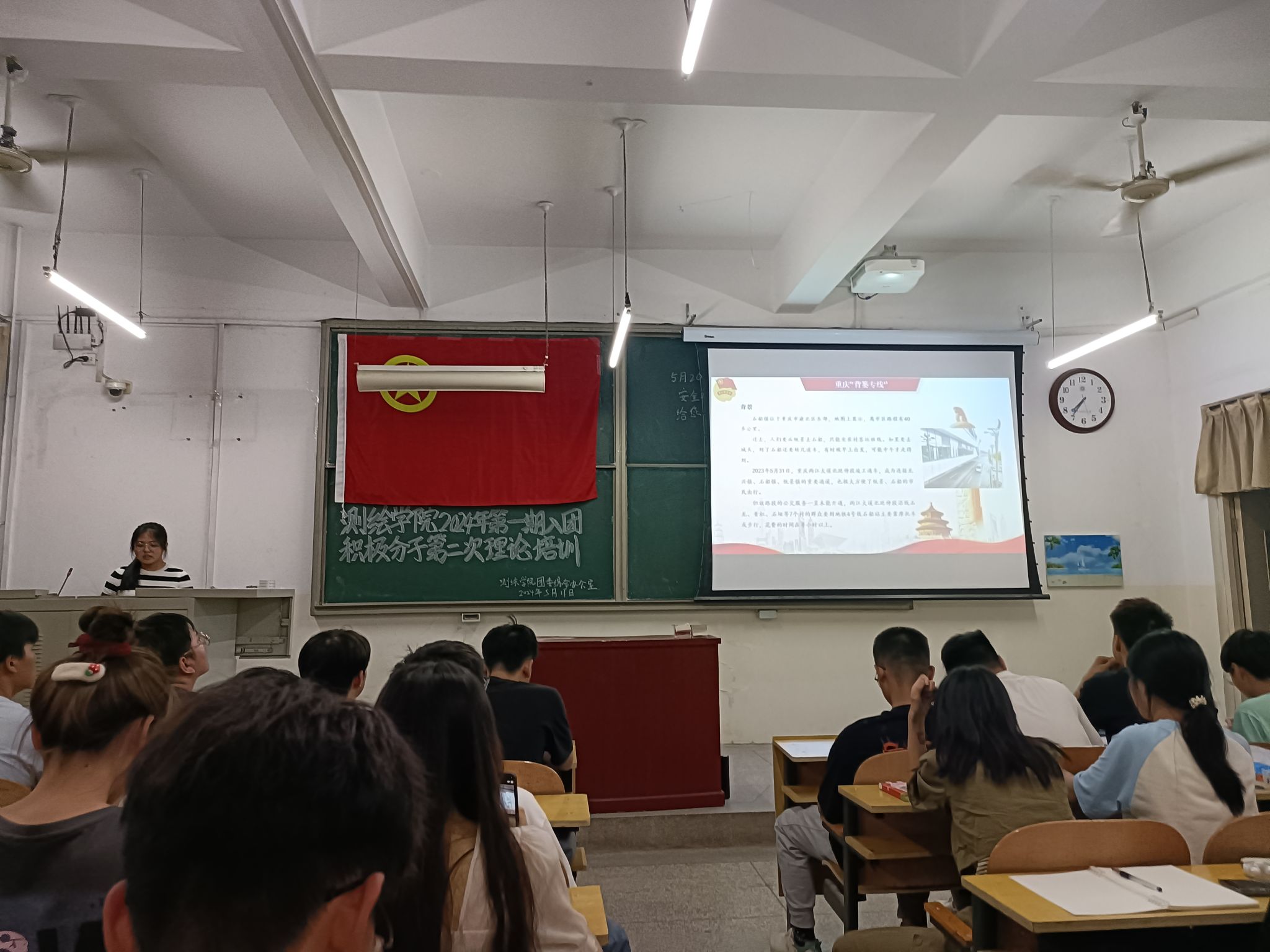 培训伊始,组织部赵博瀚为在场的积极分子们详细解读了团员的权利与义务,并着重说明了团旗团徽的正确使用方式。随后,组织部乔思琪以生动的语言讲述了重庆“背篓专线”的感人故事与嫦娥六号月背“挖宝”之旅的科研壮举。