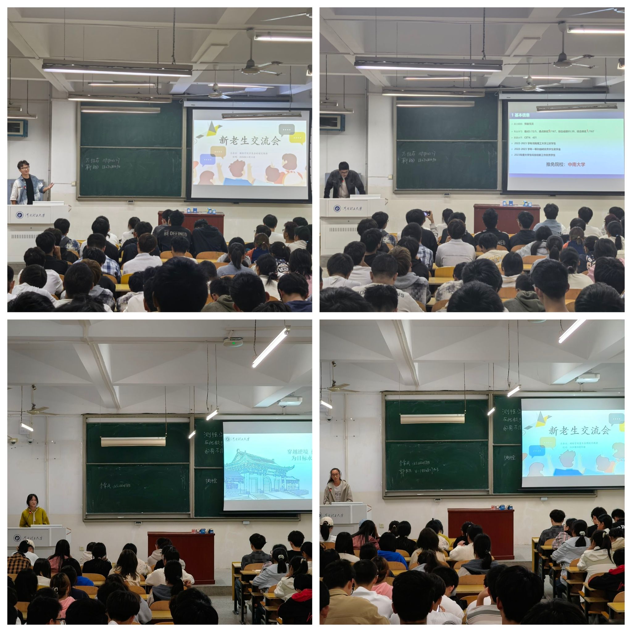 2024级新老生交流会在学院楼301、302、401教室举行,此次活动邀请了高年级获得保研推免资格的优秀学生代表做交流。学院2024级全体新生参加了此次交流会。