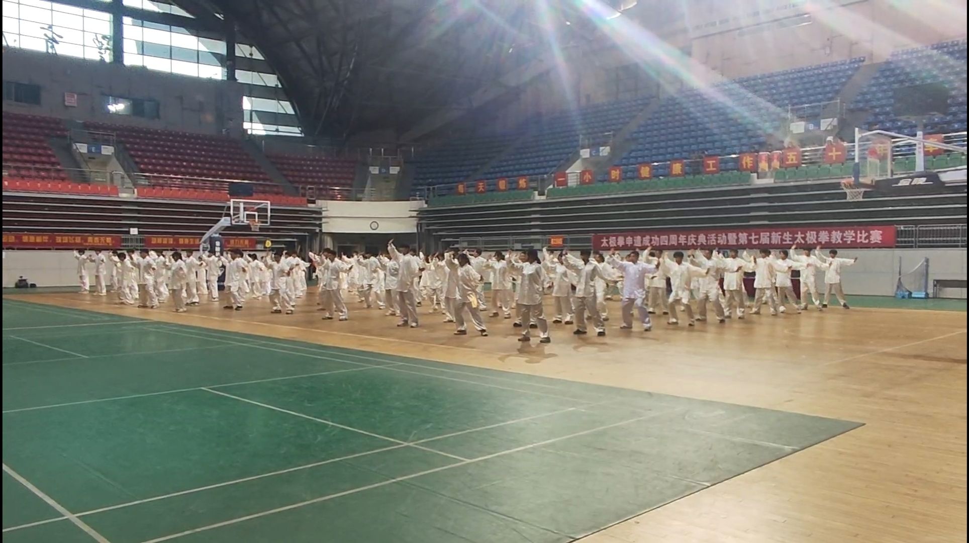 参赛队员积极准备,刻苦训练,争分夺秒,毫不懈怠,严寒天气下仍以最饱满的姿态坚持训练。赛场上,120名测绘学子腾挪转移间将陈氏太极拳精要十八式含蓄内敛、急缓相间、行云流水的拳术风格展现得淋漓尽致,悠远绵长的高山流水音乐更衬托出太极拳的意境深远、韵味十足。他们的表演刚柔并济、动静结合,展现出太极拳独有的魅力和哲学。