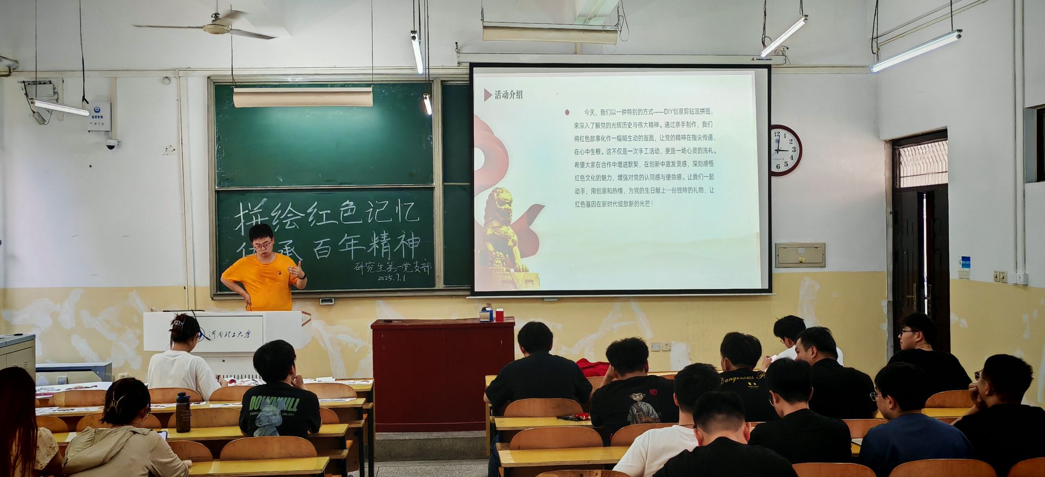 103室成功开展七一“拼绘红色记忆,传承百年精神”创意合作拼图活动。活动由党支部书记秦何主持,研究生第一党支部全体党员参加。