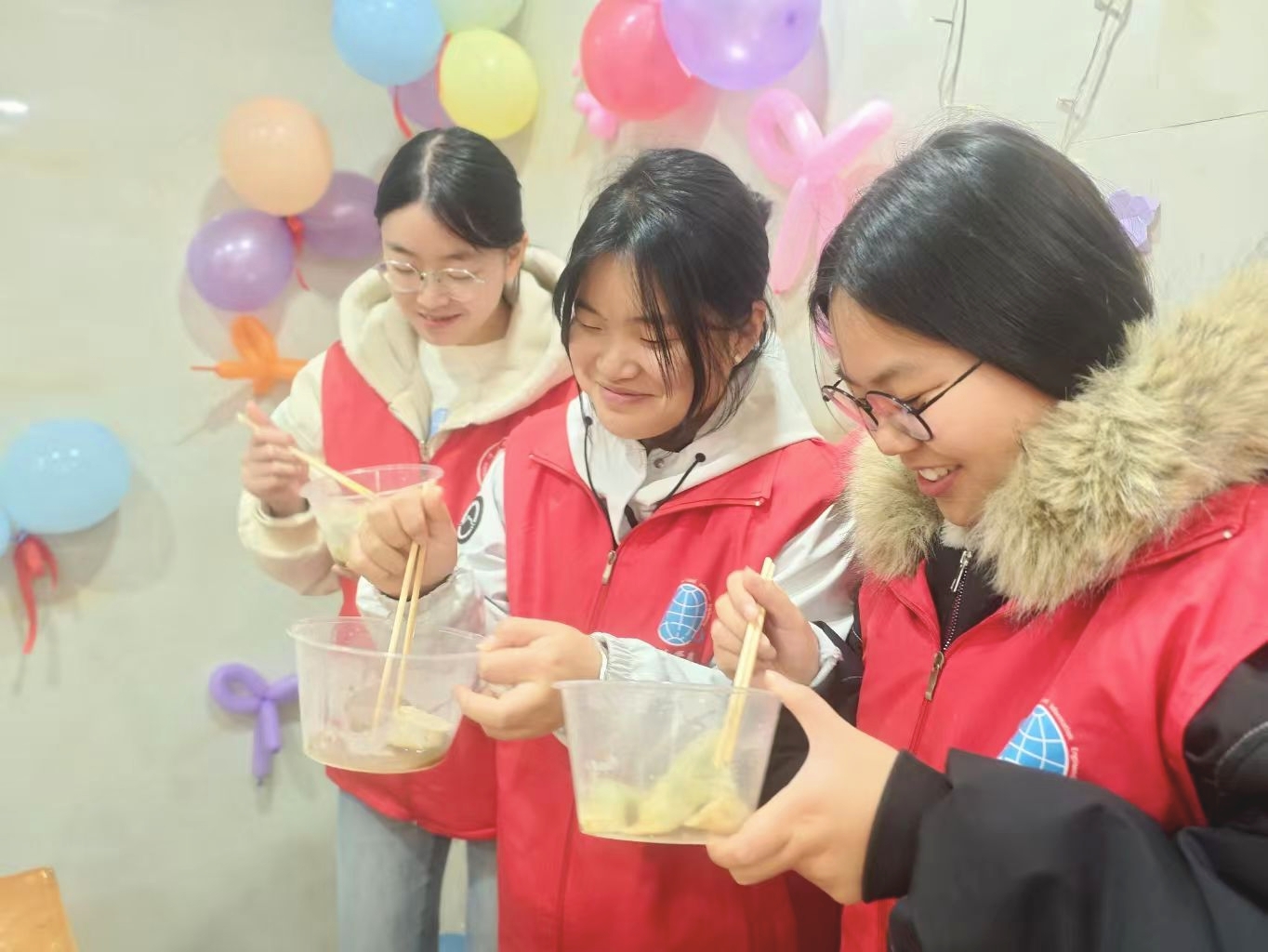 青年志愿者协会在梅园三号宿舍楼大厅举行了冬至包饺子活动。以饺子为情感寄托,驱散寒意、凝聚情谊,让这份热气腾腾的关怀,助力考研学子在追梦的航程中蓄力前行。