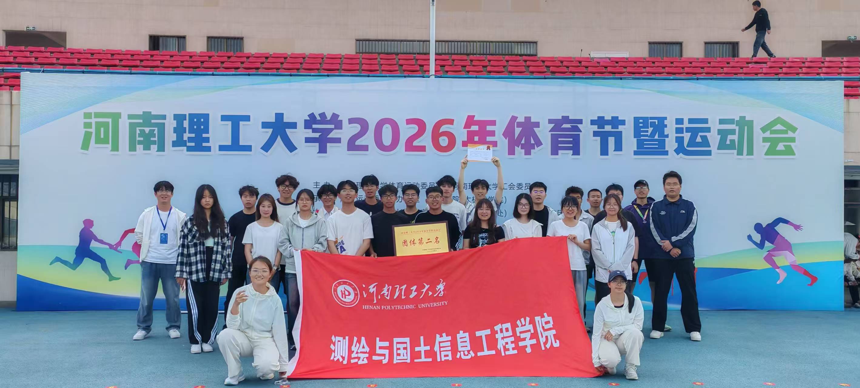荣获第一名的项目:女子 4×100 米(非体育专业组);荣获第二名的项目:男子 800 米、旋风跑;荣获第三名的项目:男子 1500 米个人、男子拔河、女子拔河、女子 15×30 米;荣获第四-第六名的项目男子:男子4*100、男子4*400、男子1500、男子5000等多项目。参赛同学秉持团结协作、顽强拼搏的体育精神,相互鼓励、彼此支持,充分展现了测绘学子朝气蓬勃、进取向上的优良风貌。