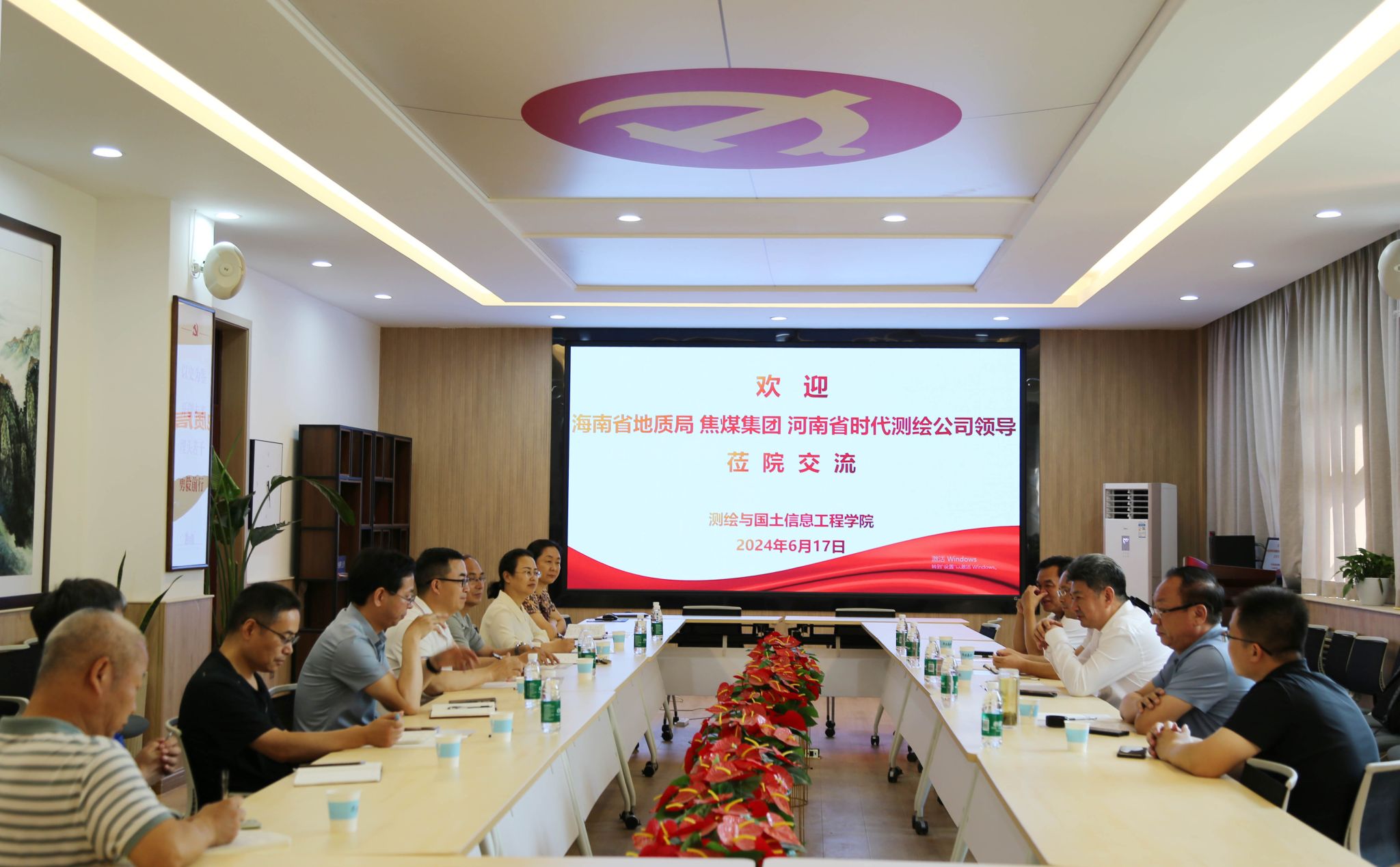6月17日下午,海南省地质局局长苏金明(矿测85级校友)、地矿处处长杨朝云,河南省时代测绘公司总经理周洪亮(矿测85级校友)、焦煤集团李润波(矿测85级校友)等一行5人莅院交流。座谈会在动画疯